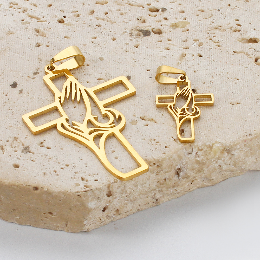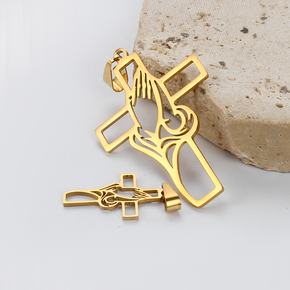 pendentifs En acier inoxydable de Croix , Acier inoxydable 304, Placage de couleur d'or, DIY & creux, doré, Vendu par PC