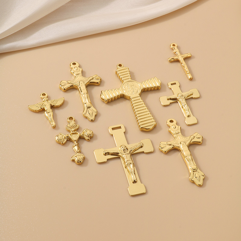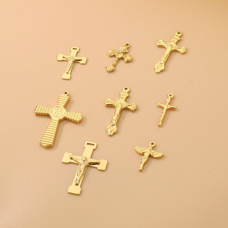 pendentifs En acier inoxydable de Croix , Acier inoxydable 304, Placage, DIY, doré, 10PC/sac, Vendu par sac