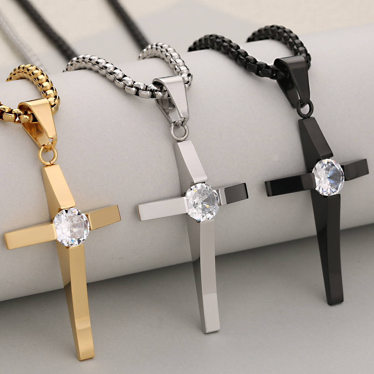 pendentifs En acier inoxydable de Croix , avec zircone cubique, couleur originale Environ Vendu par PC