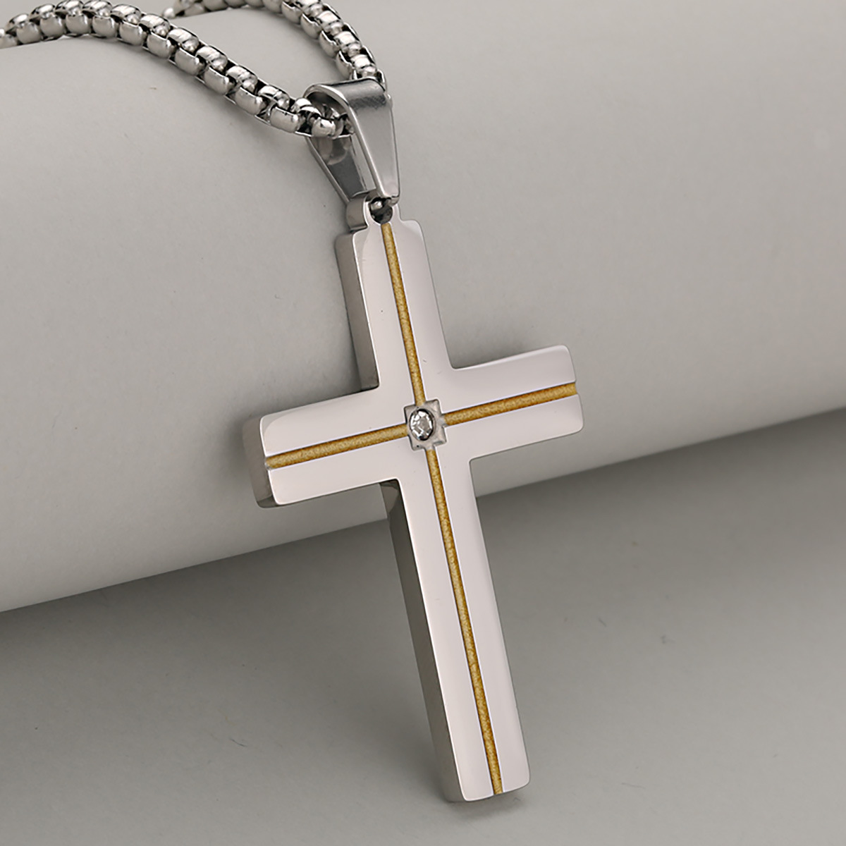 pendentifs En acier inoxydable de Croix , avec zircone cubique, couleur originale Environ Vendu par PC