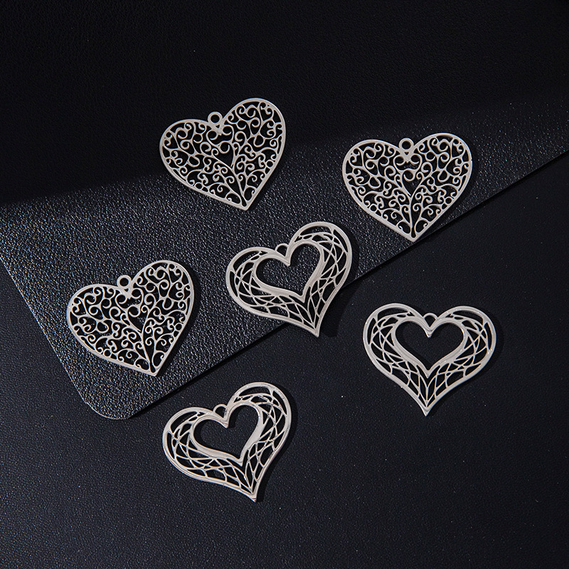 pendentifs de cœur en inox , Acier inoxydable 304, coeur, Placage de couleur argentée, DIY & styles différents pour le choix, plus de couleurs à choisir, 10PC/sac, Vendu par sac