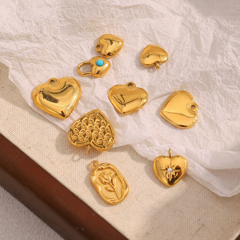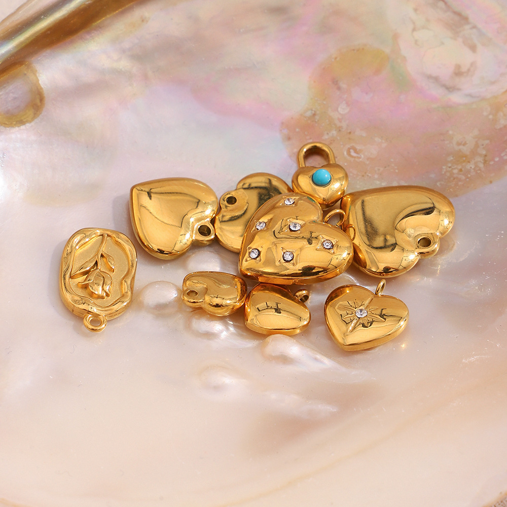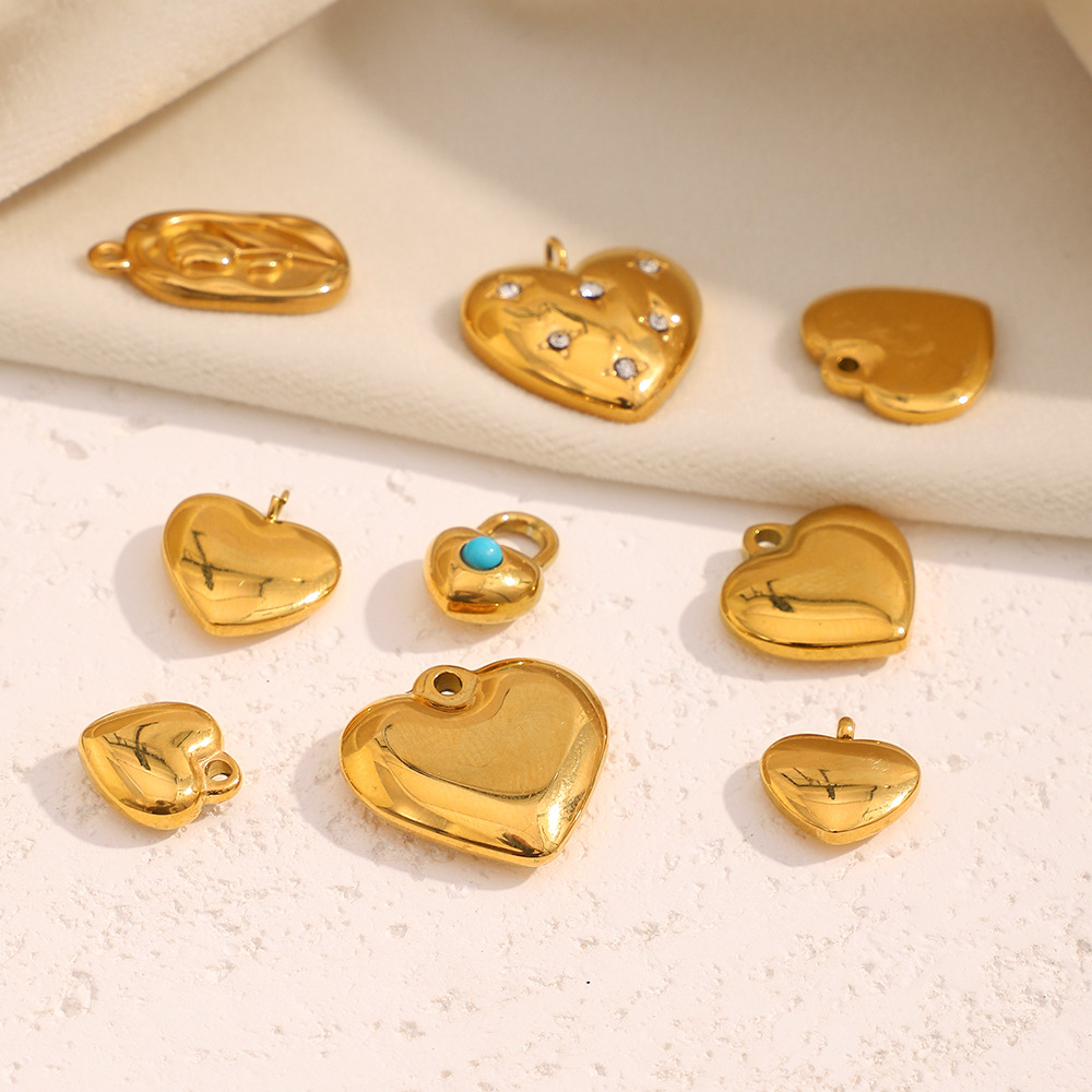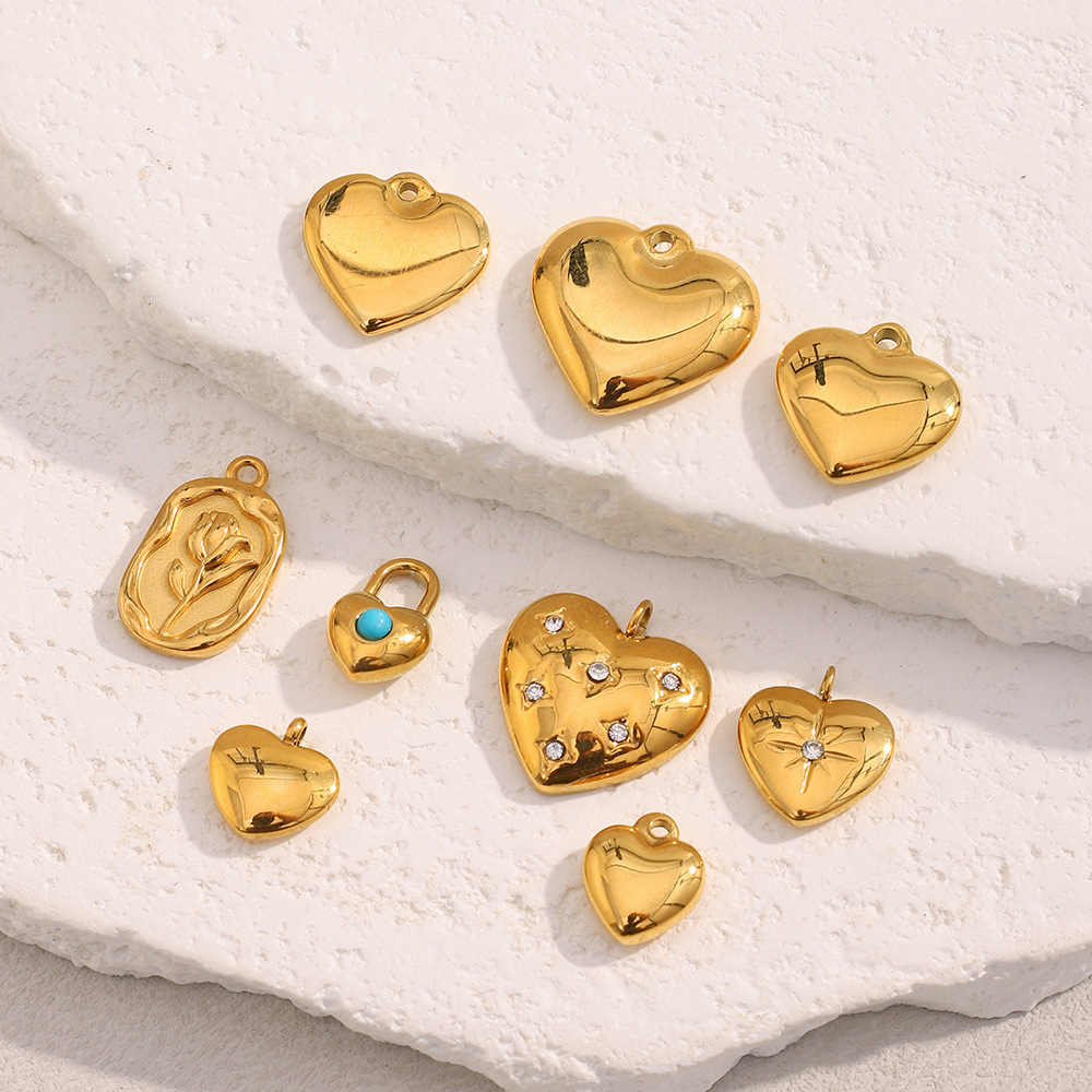 pendentifs de cœur en inox , Acier inoxydable 304, coeur, Plaqué or 18K, DIY & styles différents pour le choix & avec strass, Vendu par PC
