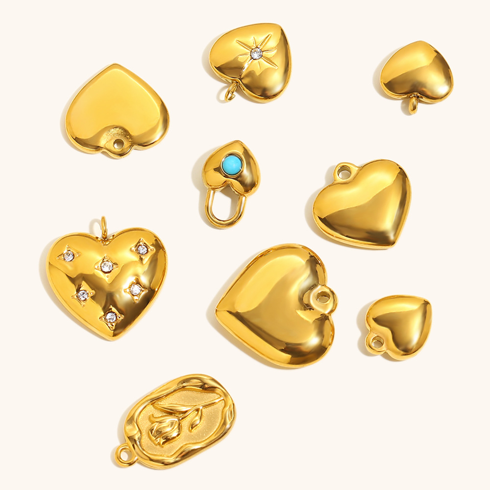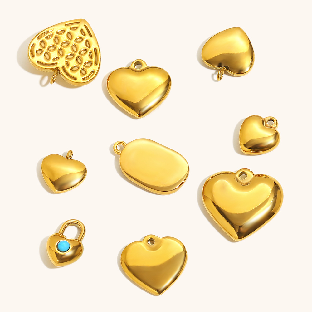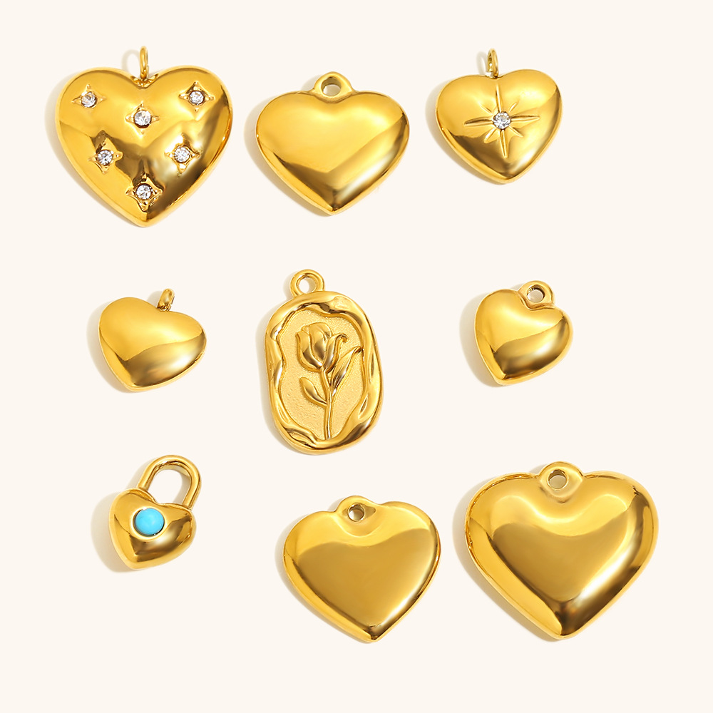 pendentifs de cœur en inox , Acier inoxydable 304, Plaqué or 18K, DIY & styles différents pour le choix, Vendu par PC
