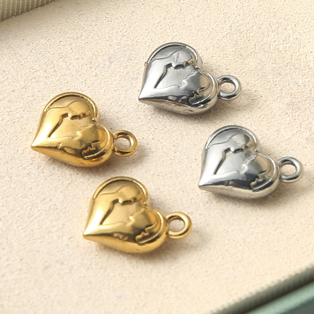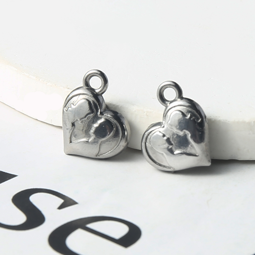 pendentifs de cœur en inox , acier inoxydable, coeur, couleur originale Environ 4mm, Vendu par PC