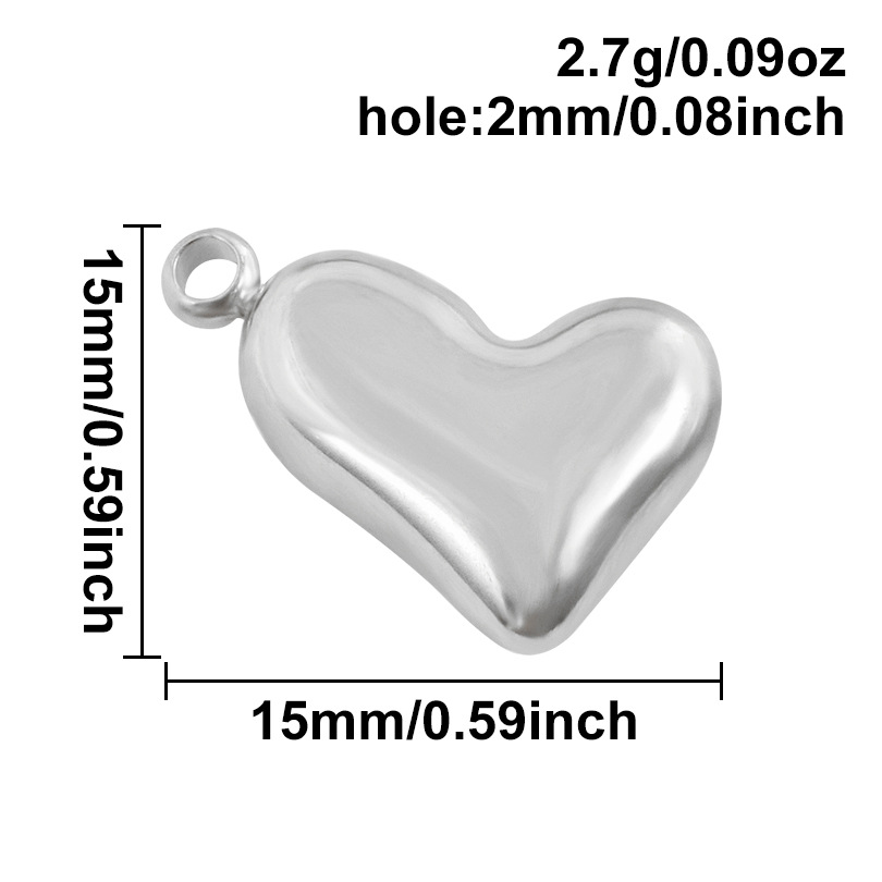 pendentifs de cœur en inox , acier inoxydable, coeur, couleur originale Environ 4mm, Vendu par PC