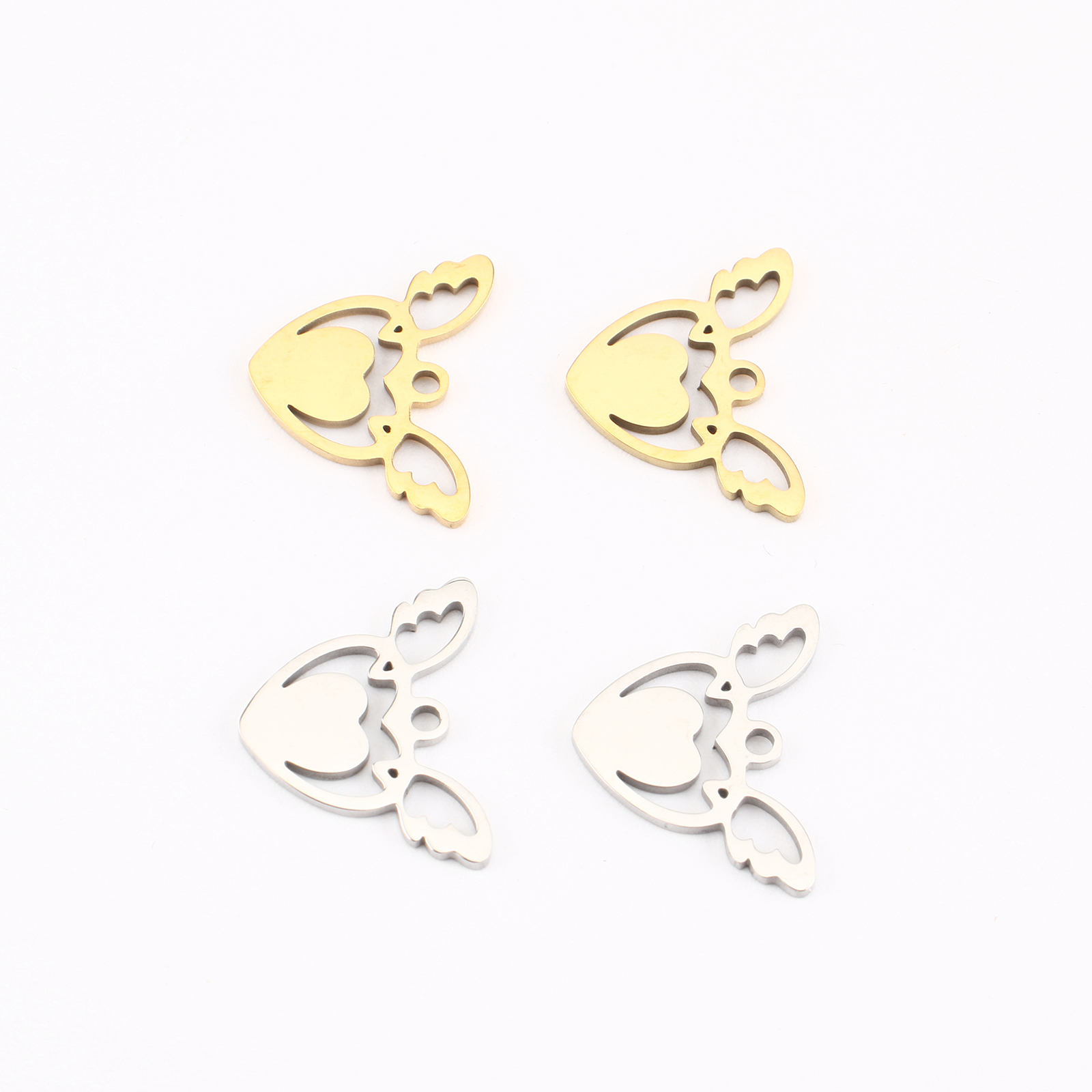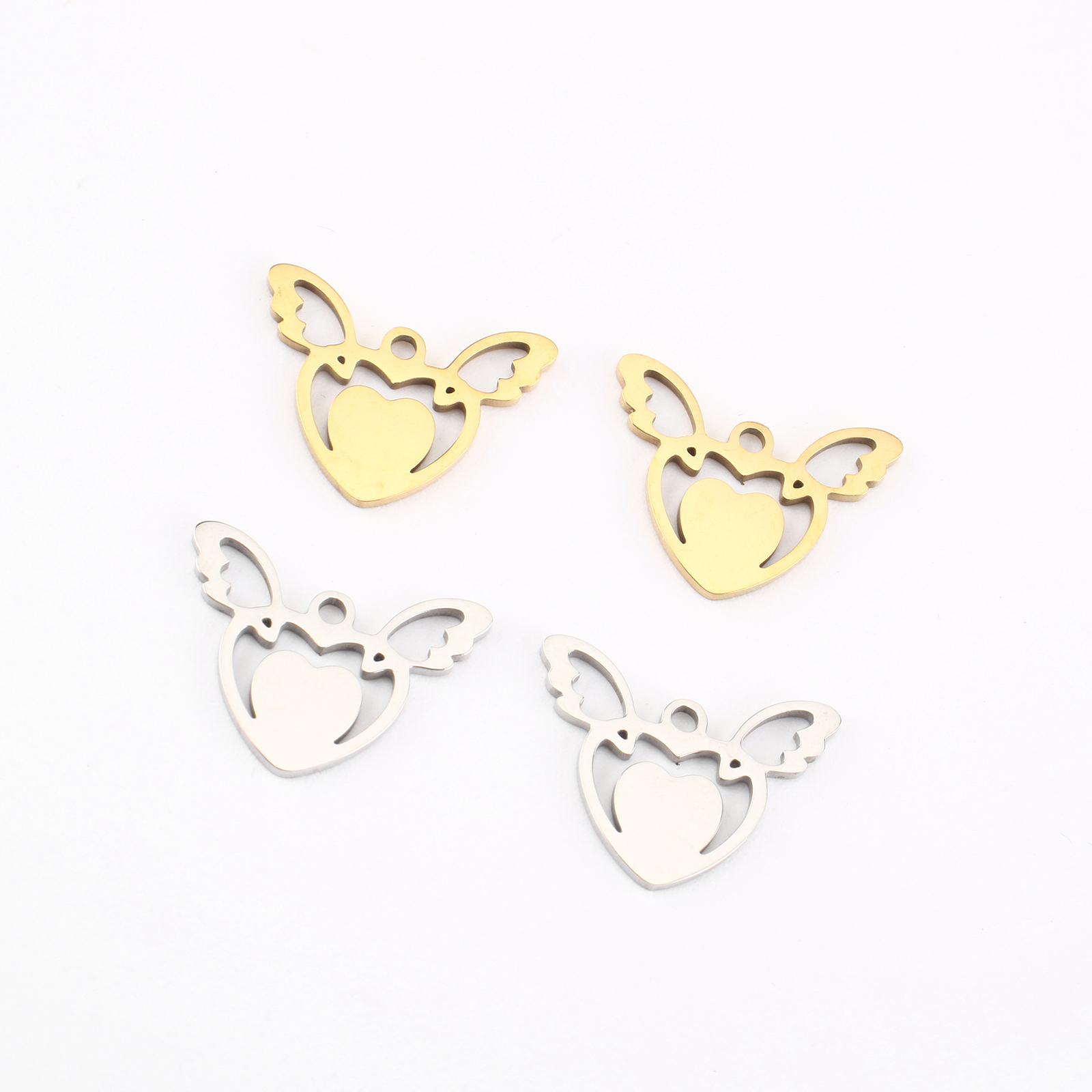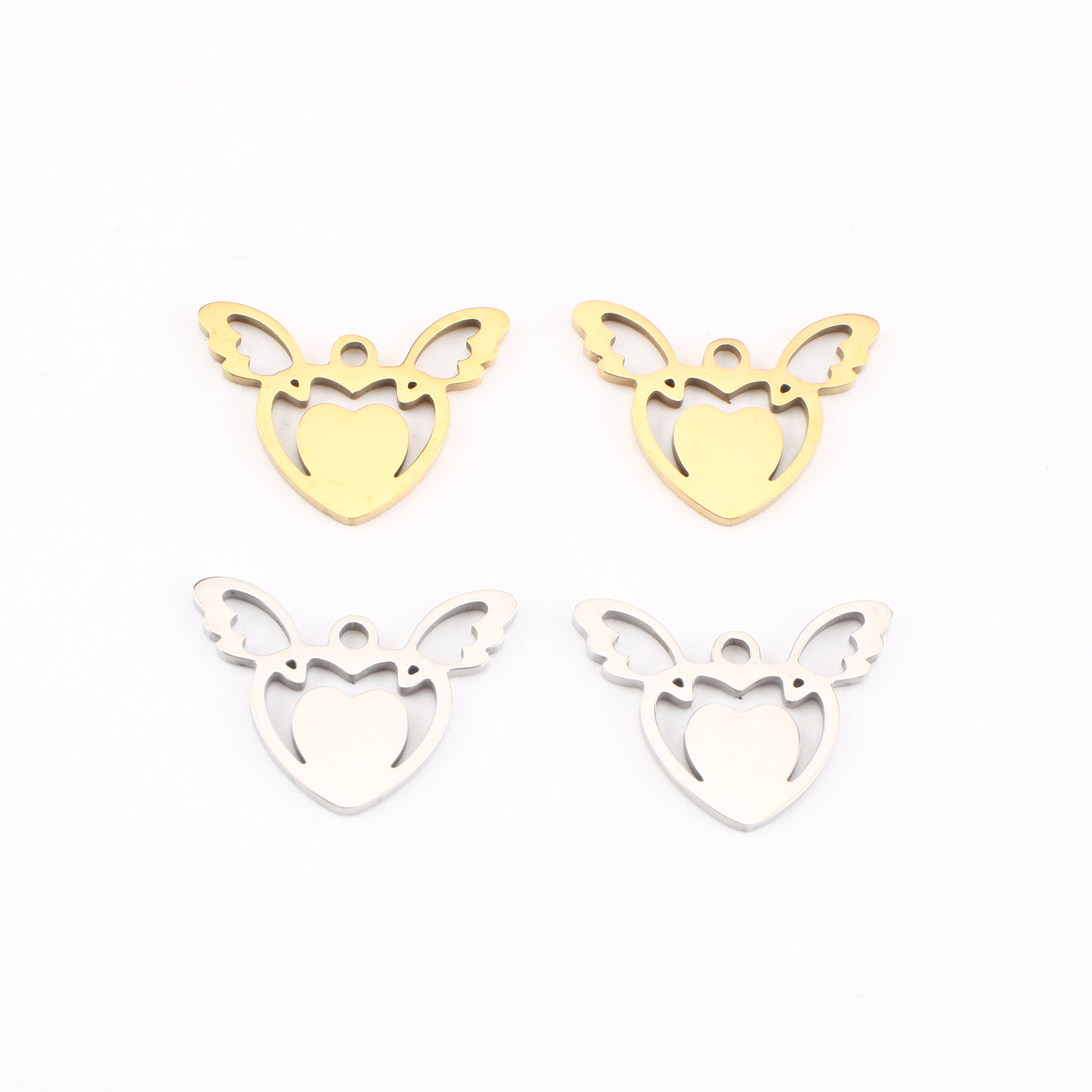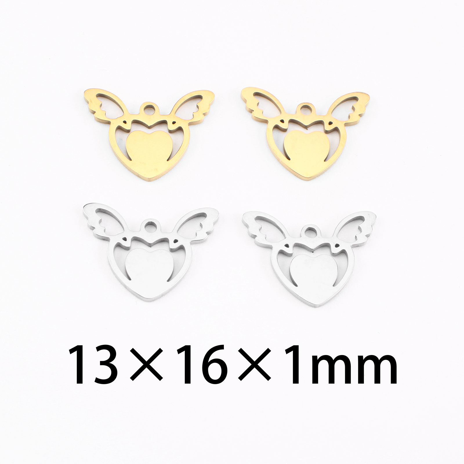 pendentifs de cœur en inox , Acier inoxydable 304, Coeur avec des ailes, Placage, DIY & creux, plus de couleurs à choisir, 13x16x1mm, Vendu par PC
