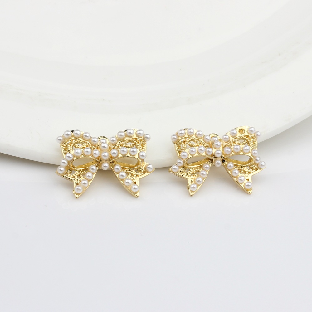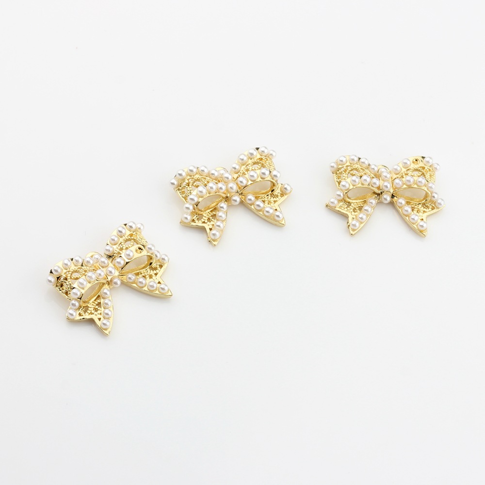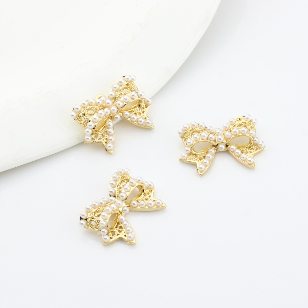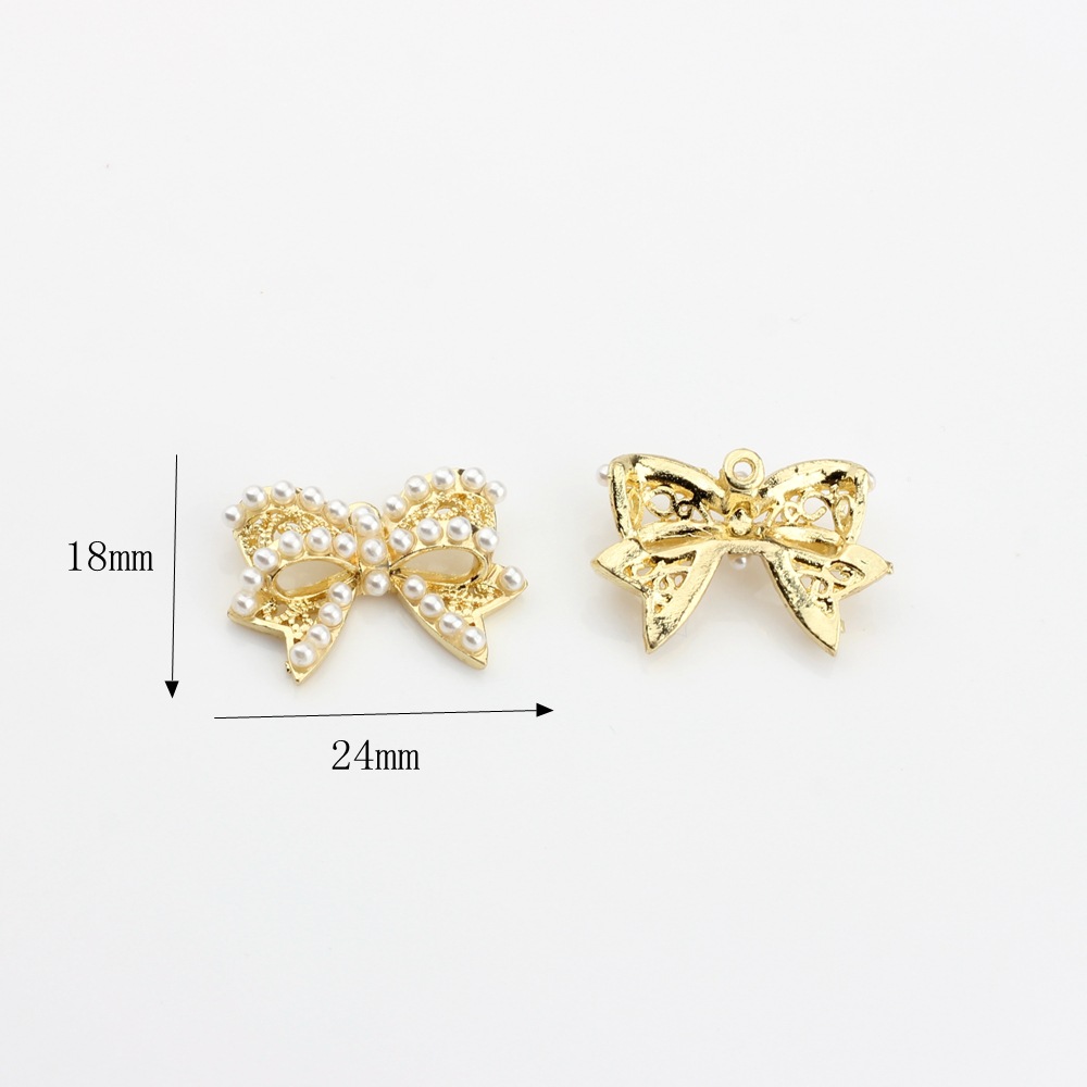 pendentifs rubanés en alliage Zinc, alliage de zinc, avec perle de plastique, Noeud papillon, Placage de couleur d'or, DIY, plus de couleurs à choisir, 100PC/sac, Vendu par sac