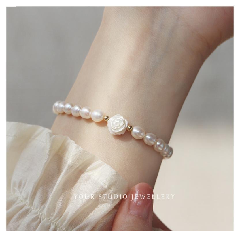 perle d'eau douce cultivée bracelet, avec coquille & laiton, Baroque, Placage, bijoux de mode, blanc, 5x6mm, Vendu par brin