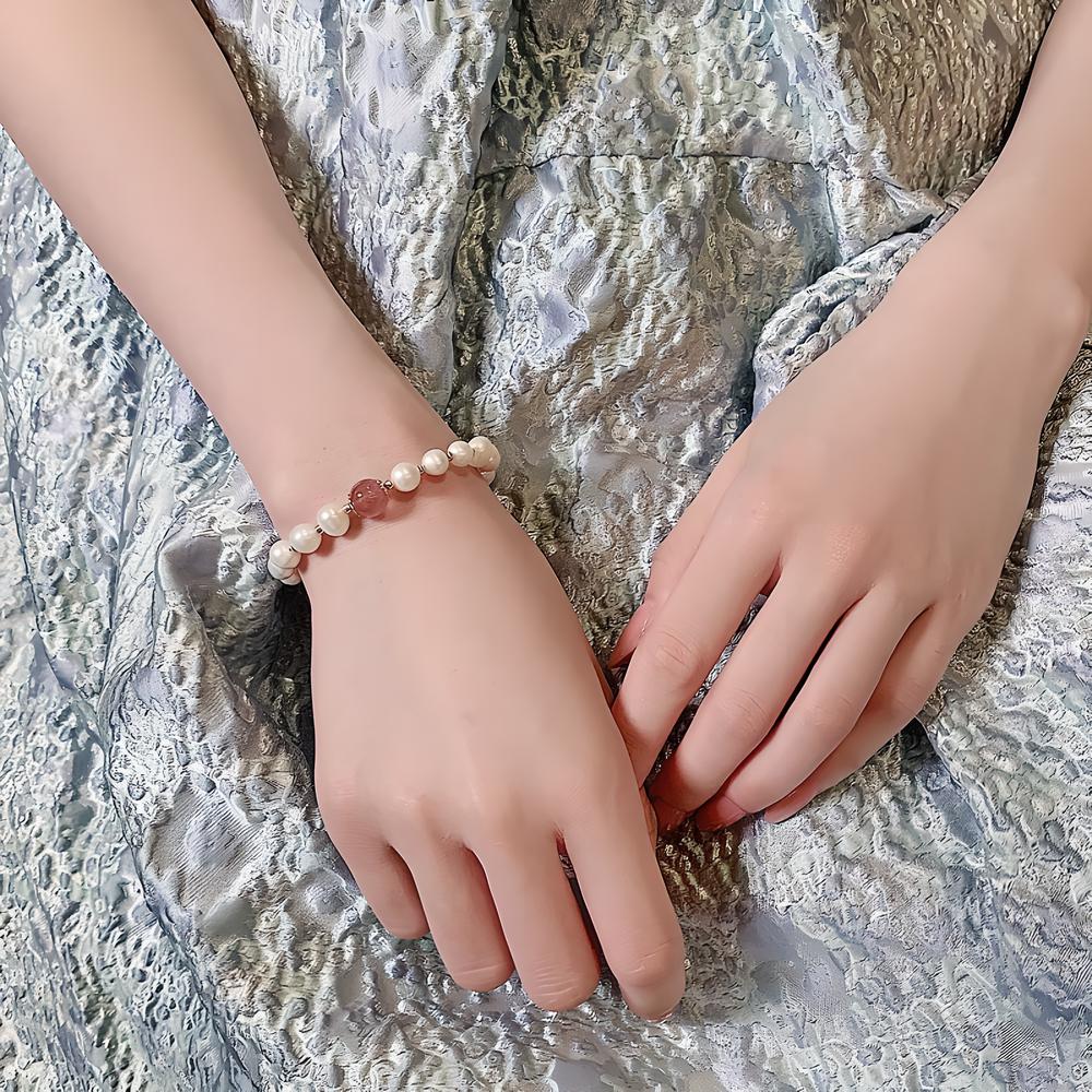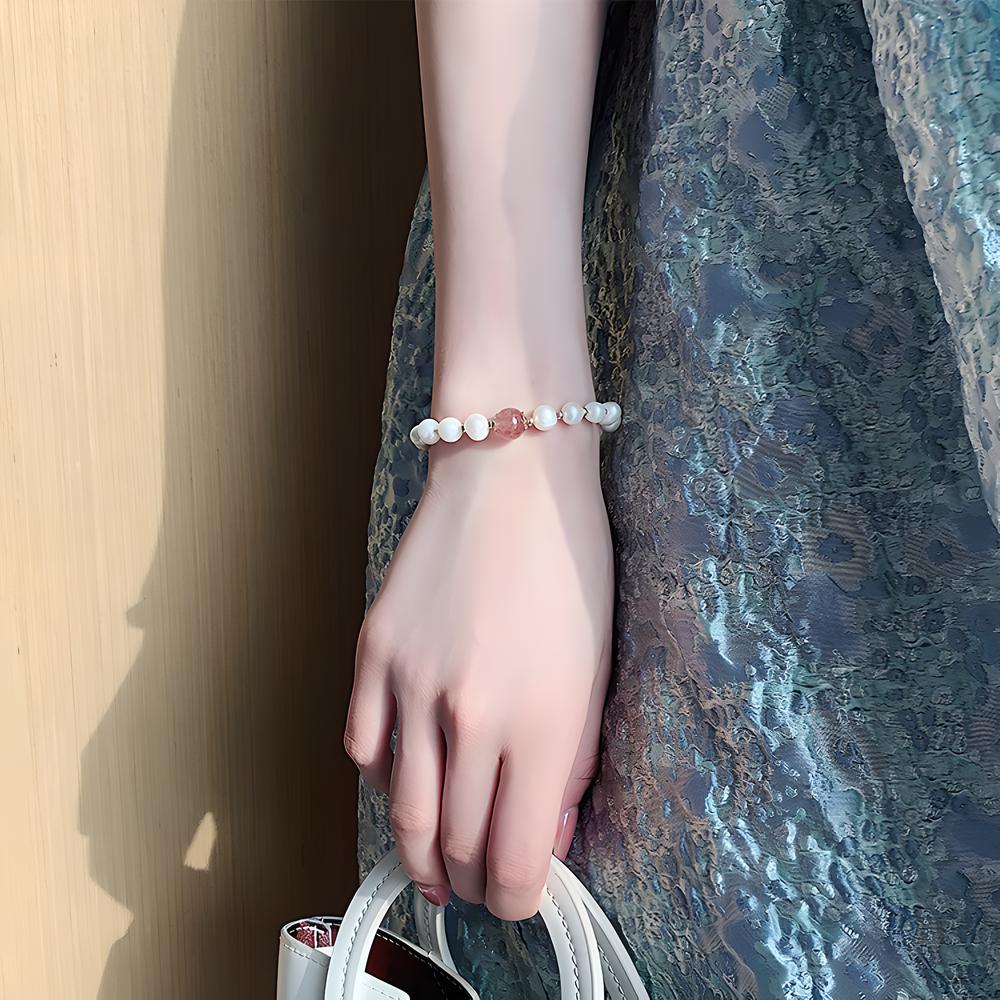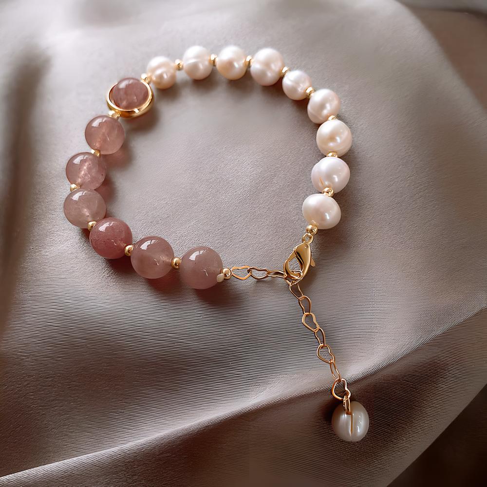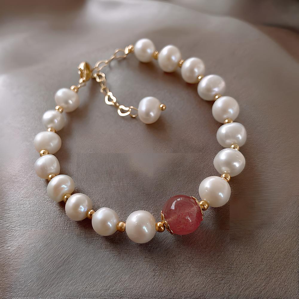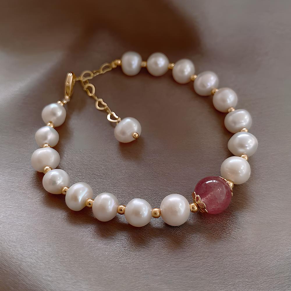 perle d'eau douce cultivée bracelet, avec Strawberry Quartz & laiton, Baroque, Placage, bijoux de mode, plus de couleurs à choisir, 220x110x50mm, Vendu par brin