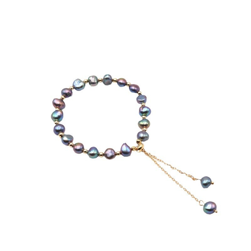perle d'eau douce cultivée bracelet, avec laiton, Baroque, Placage, bijoux de mode, plus de couleurs à choisir, 6x7mm, Vendu par brin