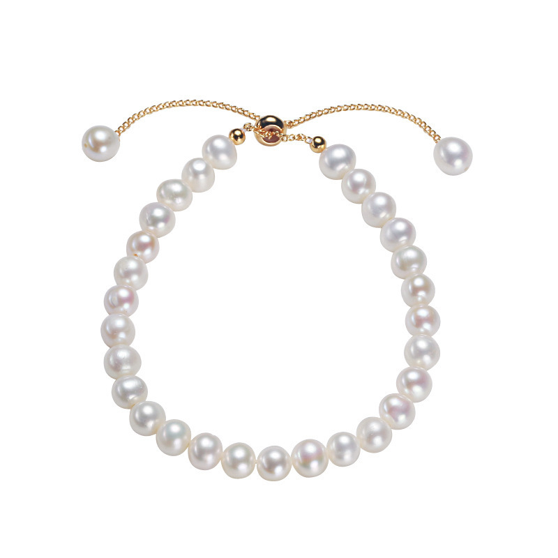 perle d'eau douce cultivée bracelet, avec laiton, Légèrement rond, Placage, bijoux de mode, blanc, 5x6mm, Vendu par brin