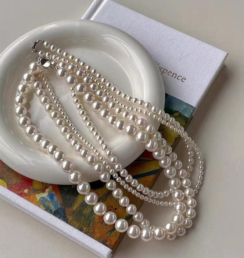 perle de verre collier, avec Argent sterling 925, Rond, styles différents pour le choix & pour femme, Longueur:Environ 17.7 pouce, Vendu par PC