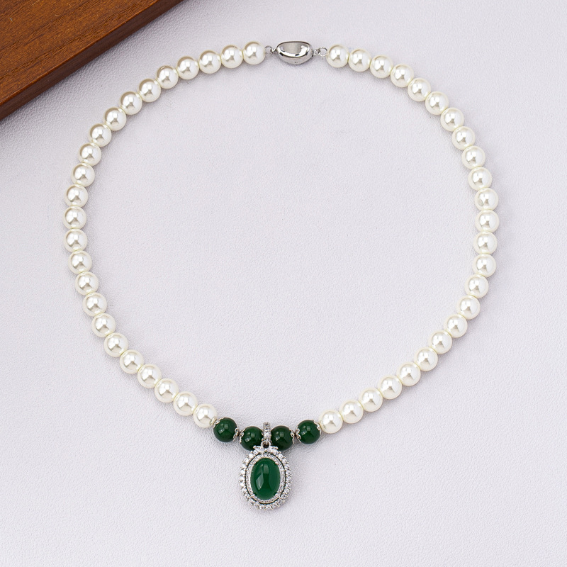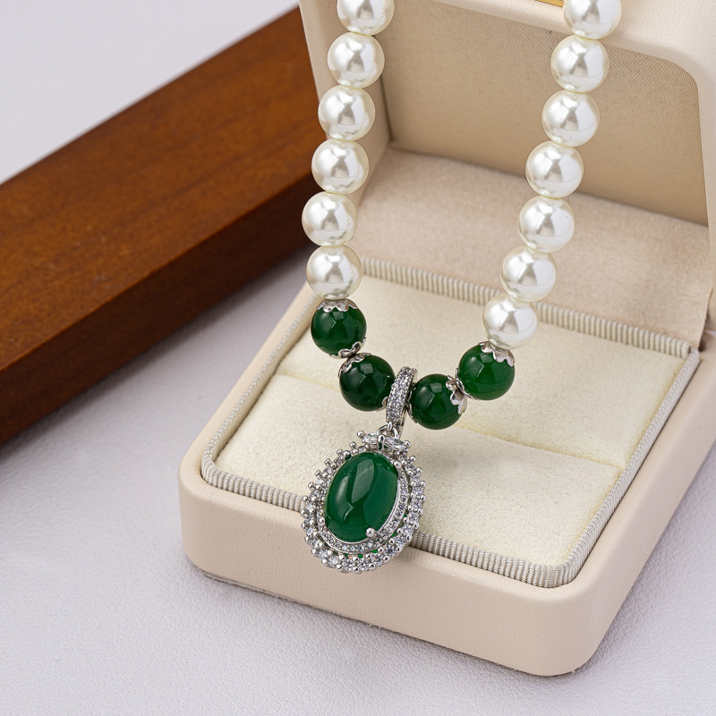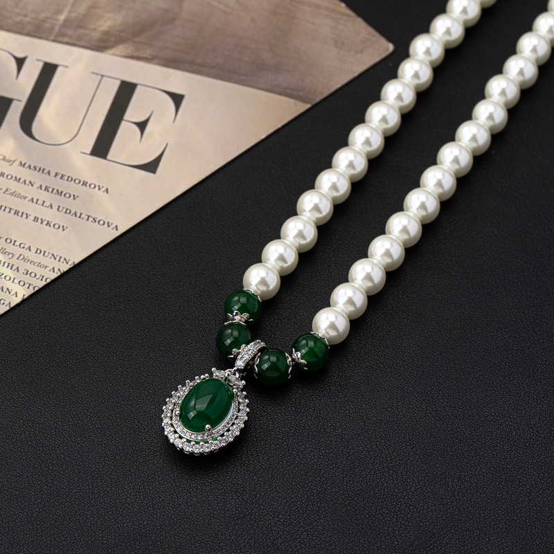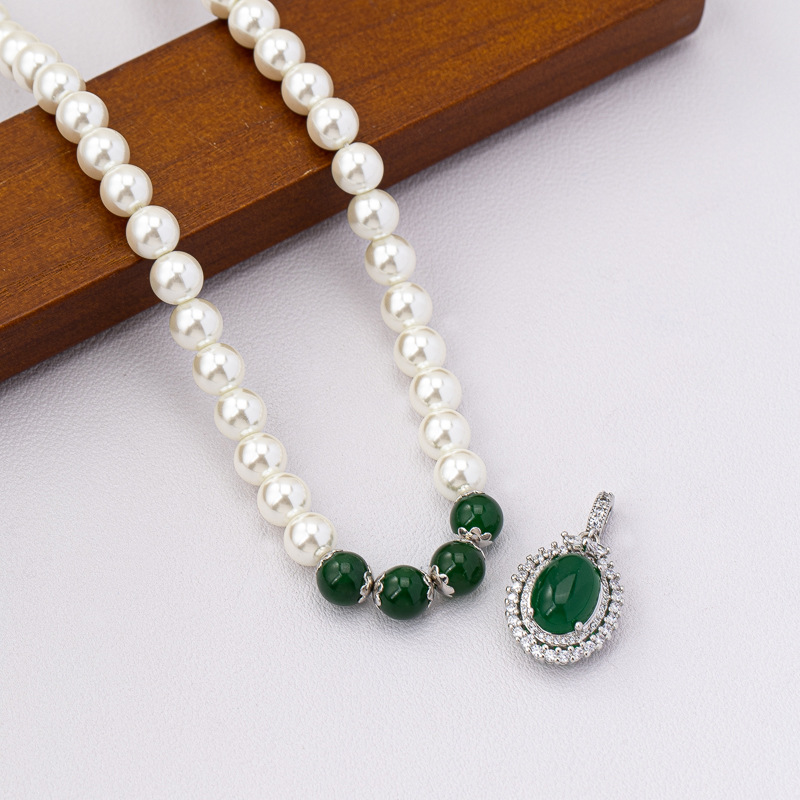 perle de verre collier, avec agate verte, normes différentes pour le choix & pavé de micro zircon & pour femme, Vendu par PC