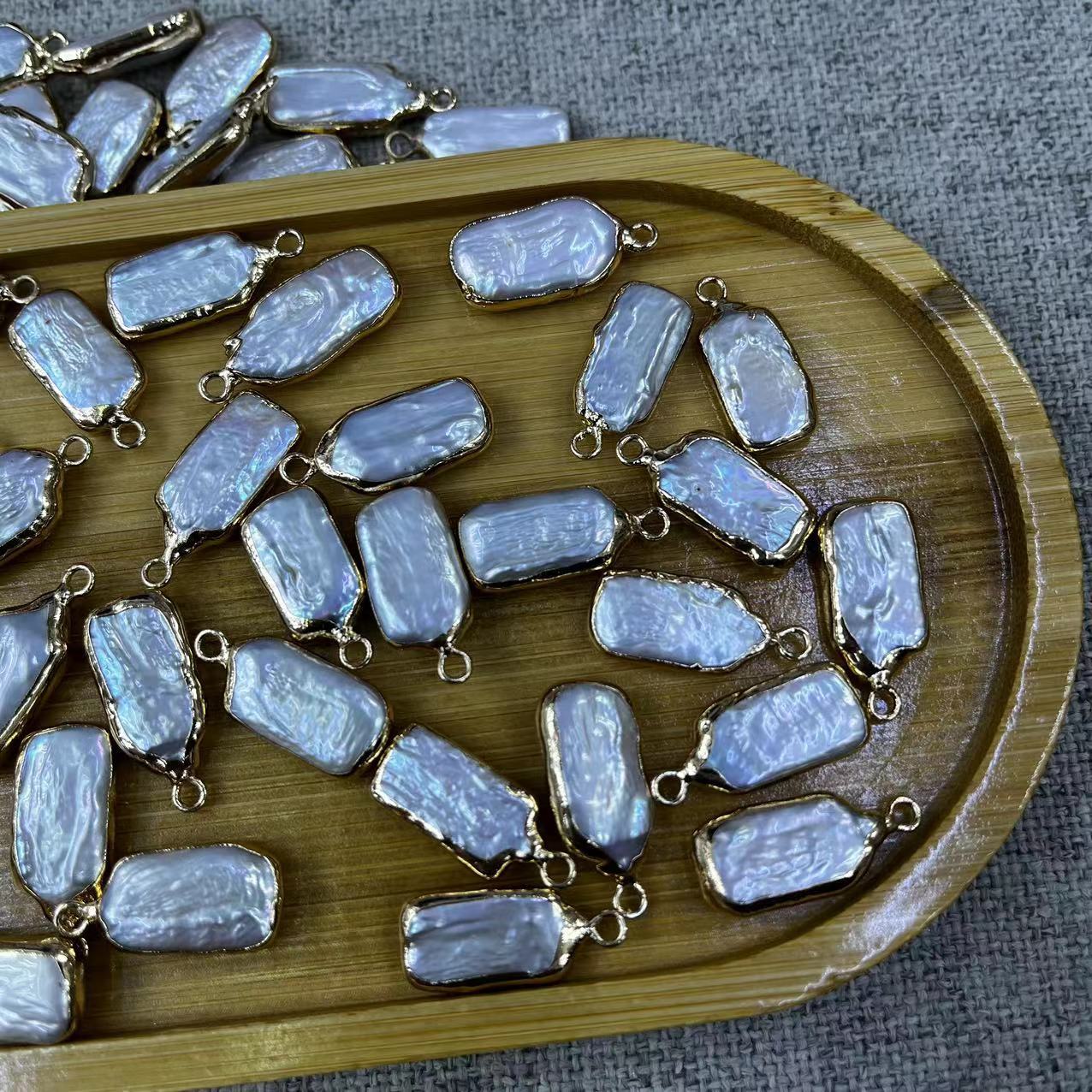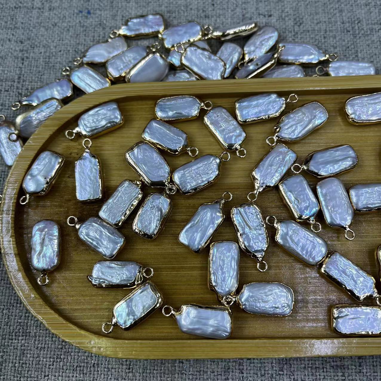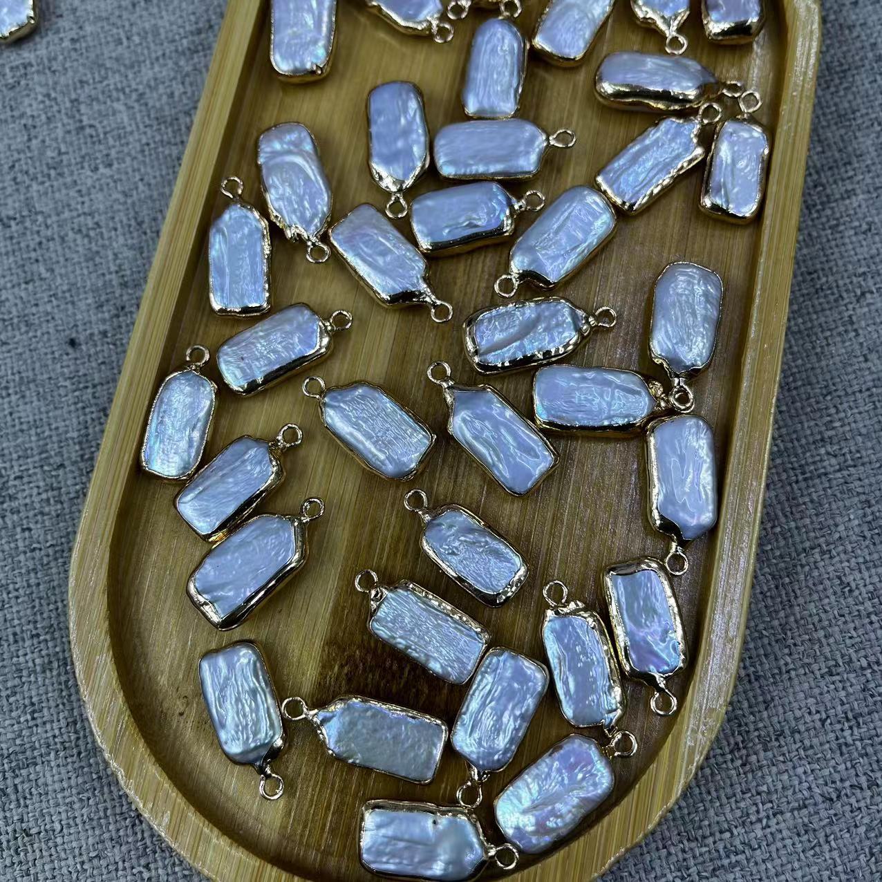 perle d'eau douce cultivée Pendentif, avec laiton, rectangle, Placage de couleur d'or, DIY, 10x16mm, Vendu par PC