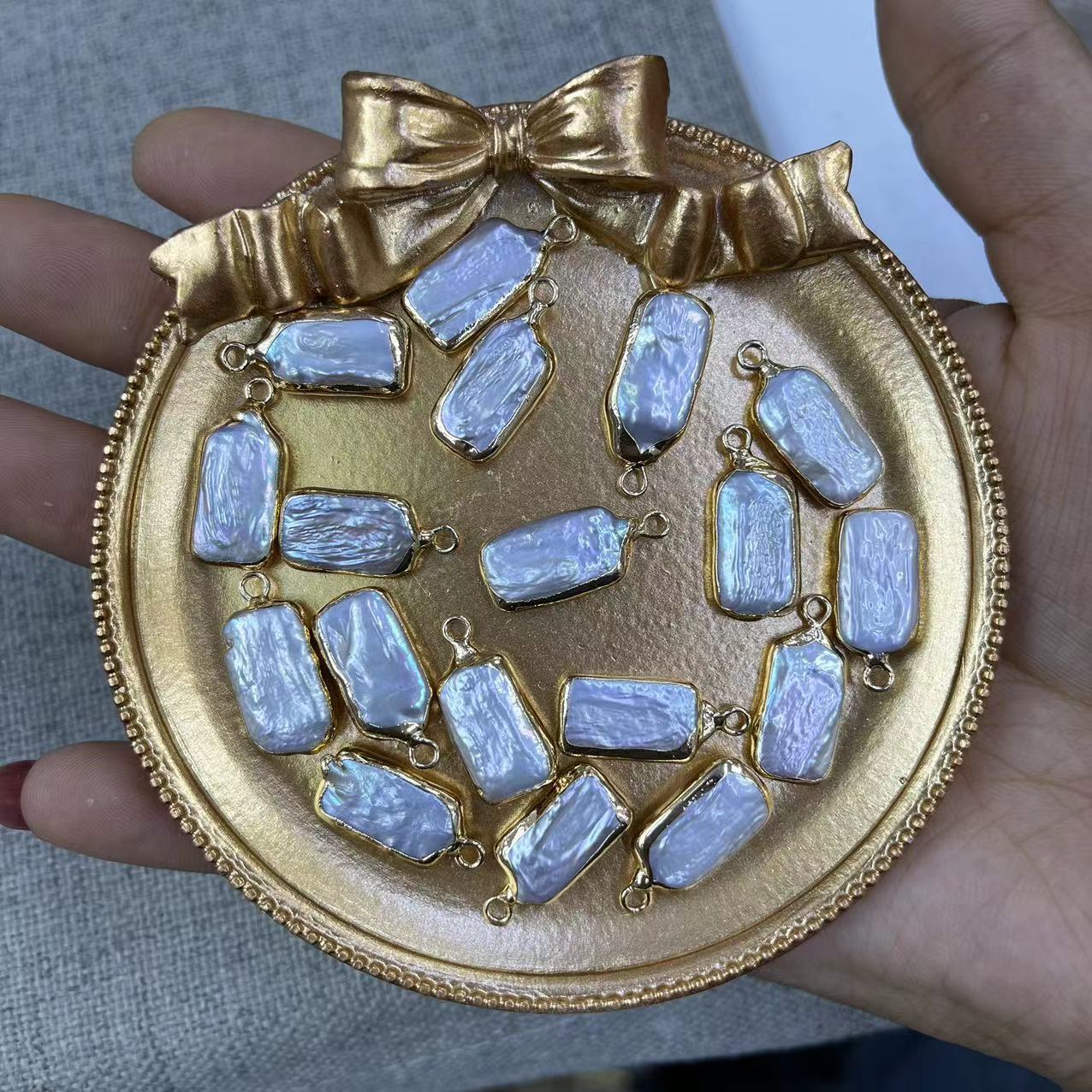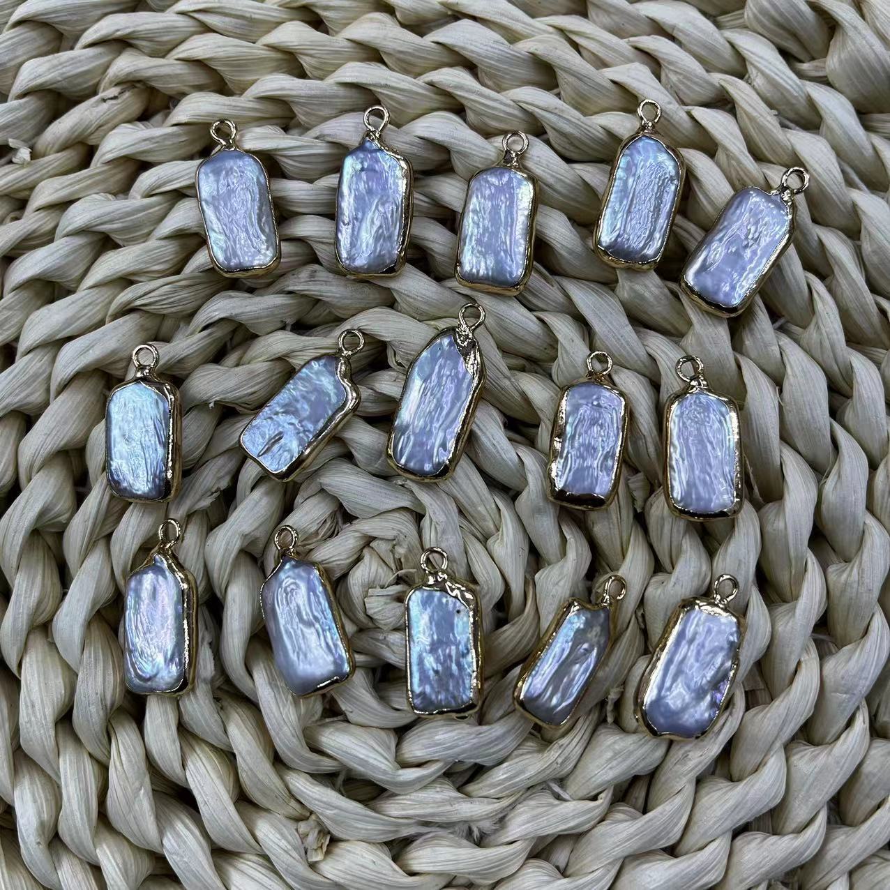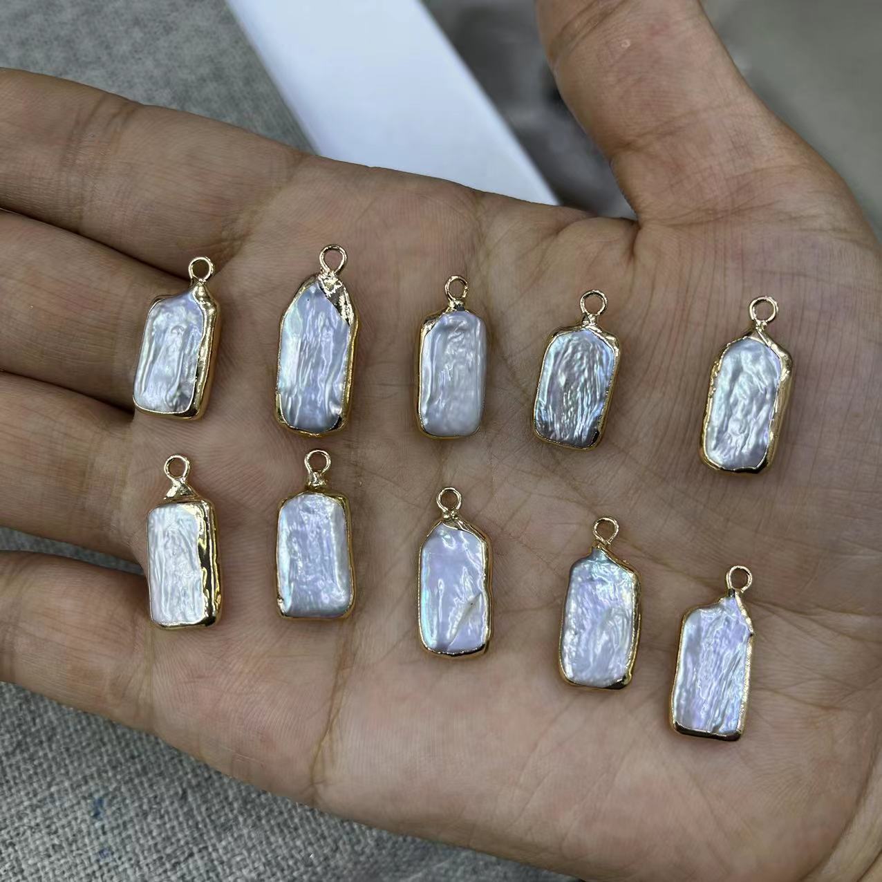 perle d'eau douce cultivée Pendentif, avec laiton, rectangle, Placage de couleur d'or, DIY, 10x16mm, Vendu par PC