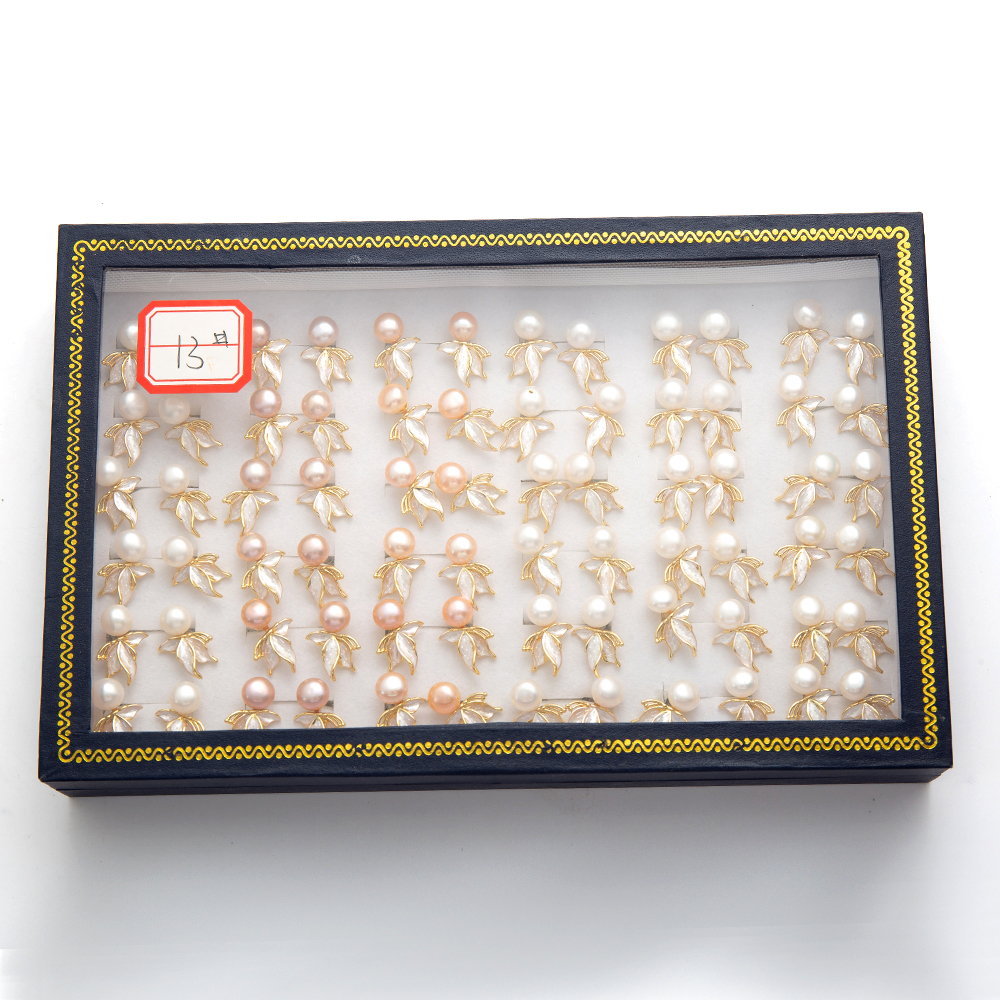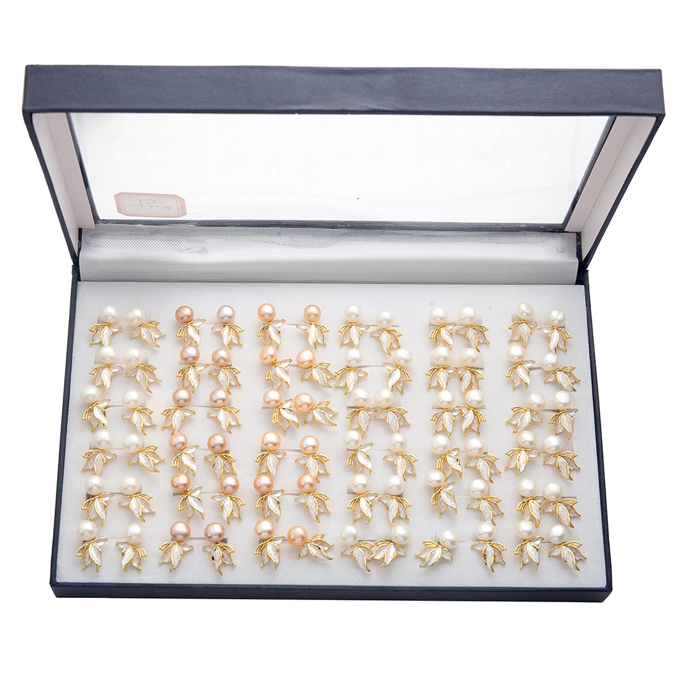 perle d'eau douce cultivée boucle d oreille dormeuse, avec Alliage, Placage de couleur d'or, bijoux de mode, plus de couleurs à choisir, 20x20mm, 36pairescouple/boîte, Vendu par boîte
