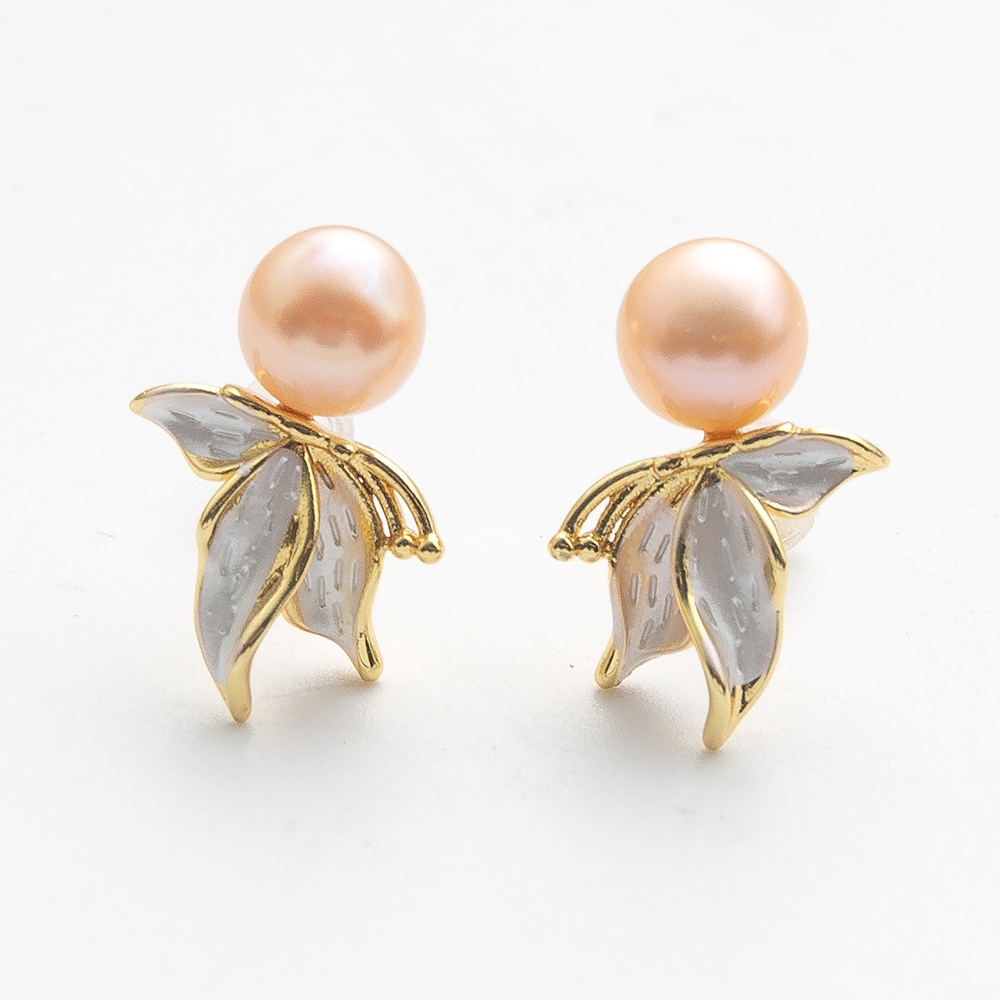 perle d'eau douce cultivée boucle d oreille dormeuse, laiton puce boucle d'oreille, dôme, plus de couleurs à choisir, 8--9mm, Vendu par paire