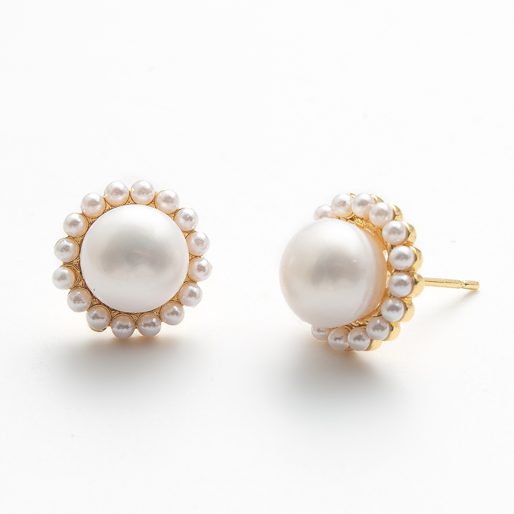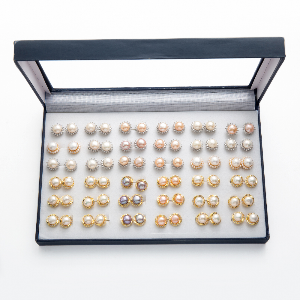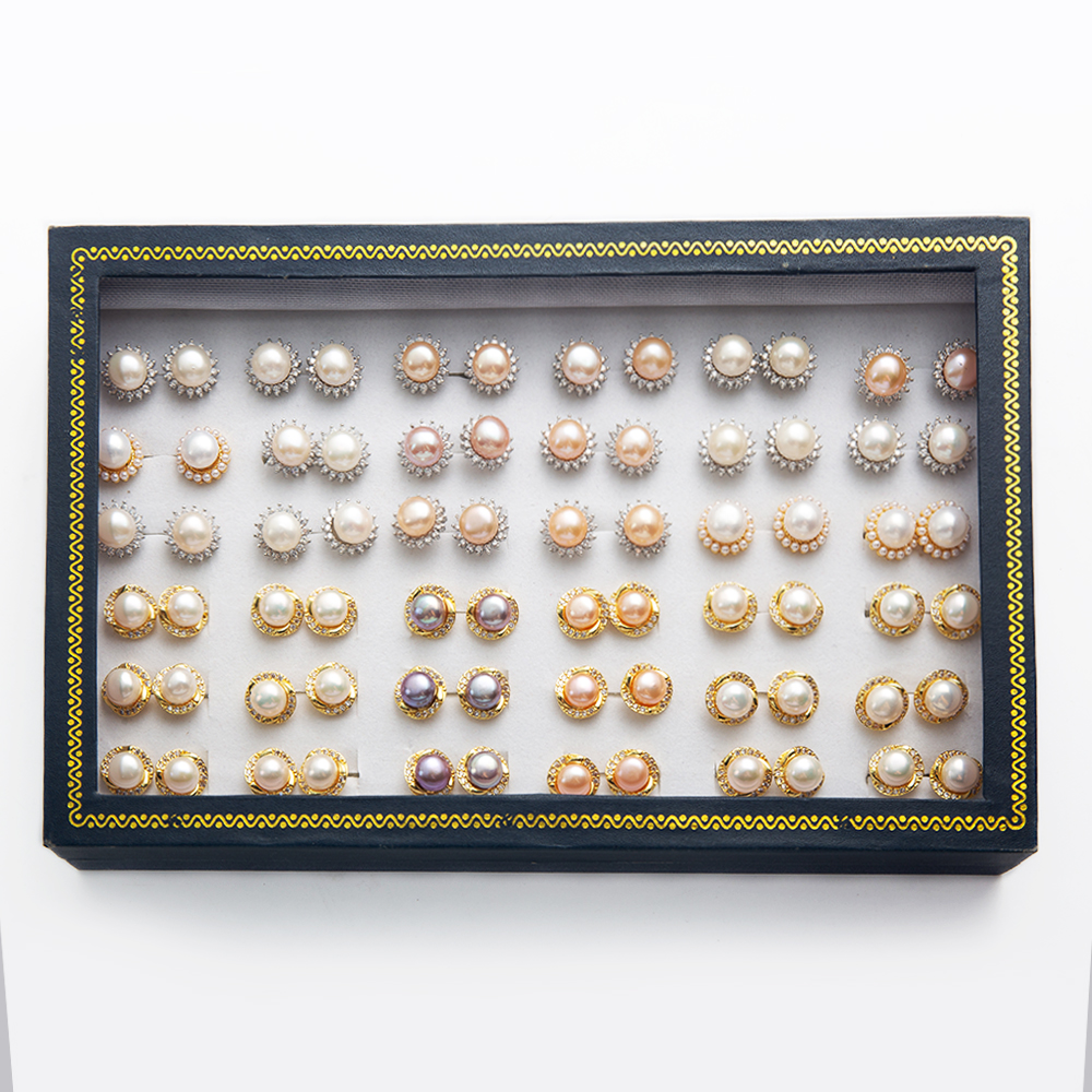 perle d'eau douce cultivée boucle d oreille dormeuse, avec Alliage, Placage de couleur d'or, bijoux de mode & avec strass, plus de couleurs à choisir, 11x11mm, 36pairescouple/boîte, Vendu par boîte