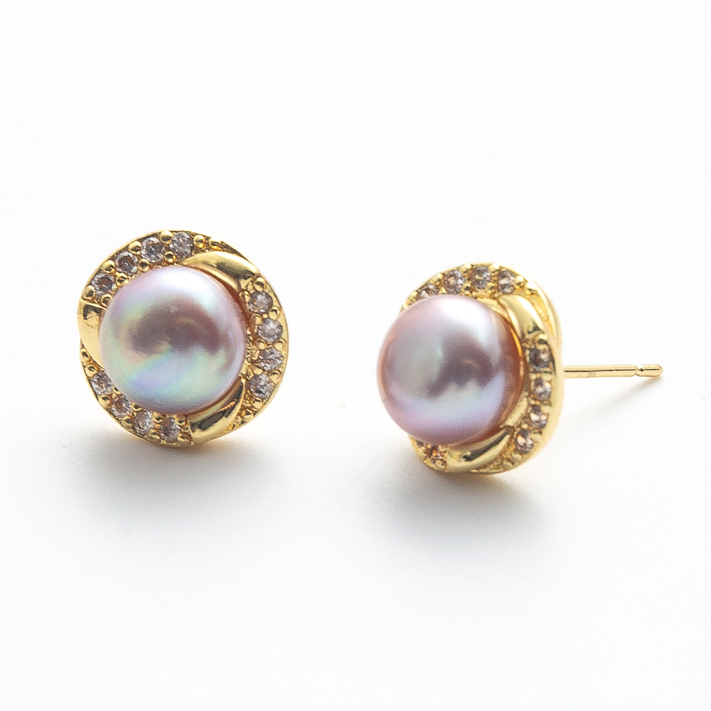 perle d'eau douce cultivée boucle d oreille dormeuse, laiton puce boucle d'oreille, dôme, plus de couleurs à choisir, 8--9mm, Vendu par paire