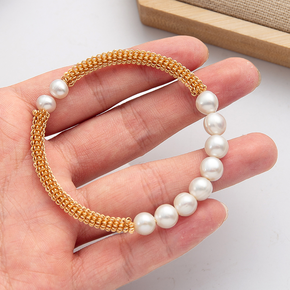 Bracelets de perles, perle d'eau douce cultivée, avec laiton, Placage de couleur d'or, Style coréen & pour femme, plus de couleurs à choisir Environ 7-7.5 pouce, Vendu par PC