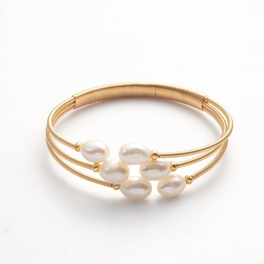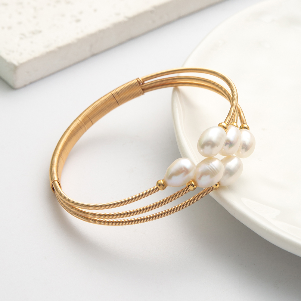 perle d'eau douce cultivée bracelet manchette, avec Alliage, Irrégulière, Placage de couleur d'or, bijoux de mode, plus de couleurs à choisir, Diamètre intérieur:Environ 55mm, Vendu par PC