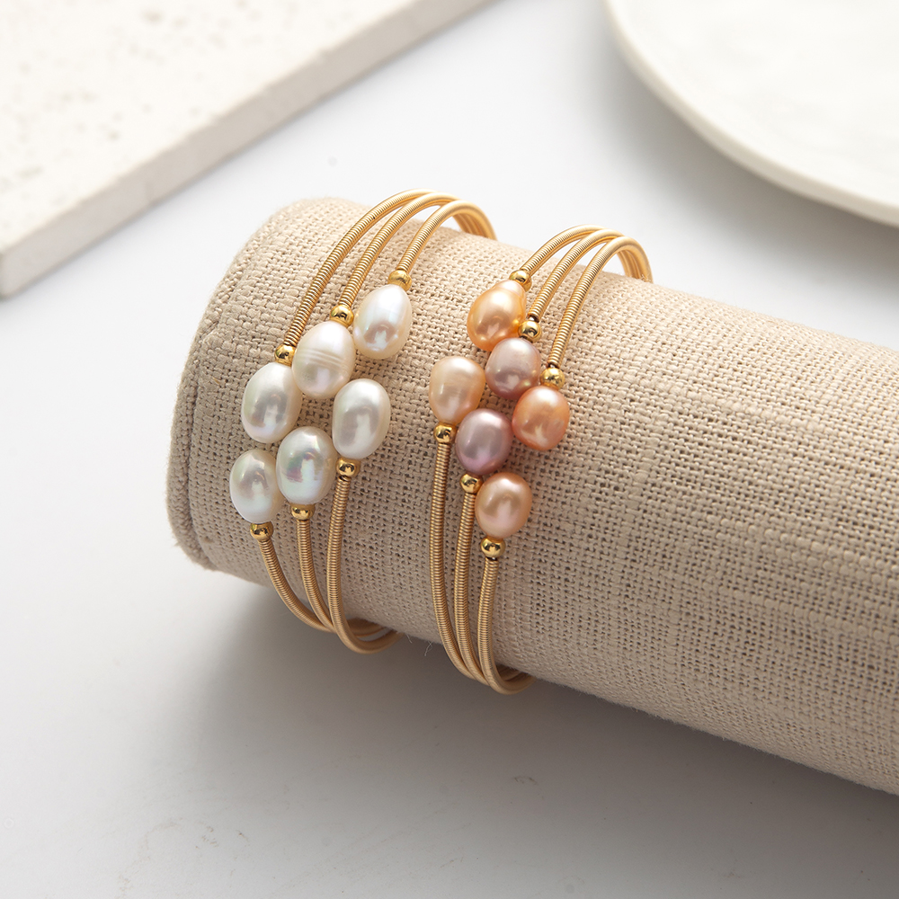 Bracelets de perles, perle d'eau douce cultivée, avec laiton, Placage de couleur d'or, Style coréen & pour femme, plus de couleurs à choisir Environ 7-7.5 pouce, Vendu par PC
