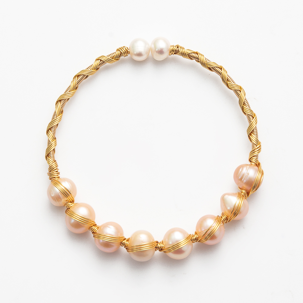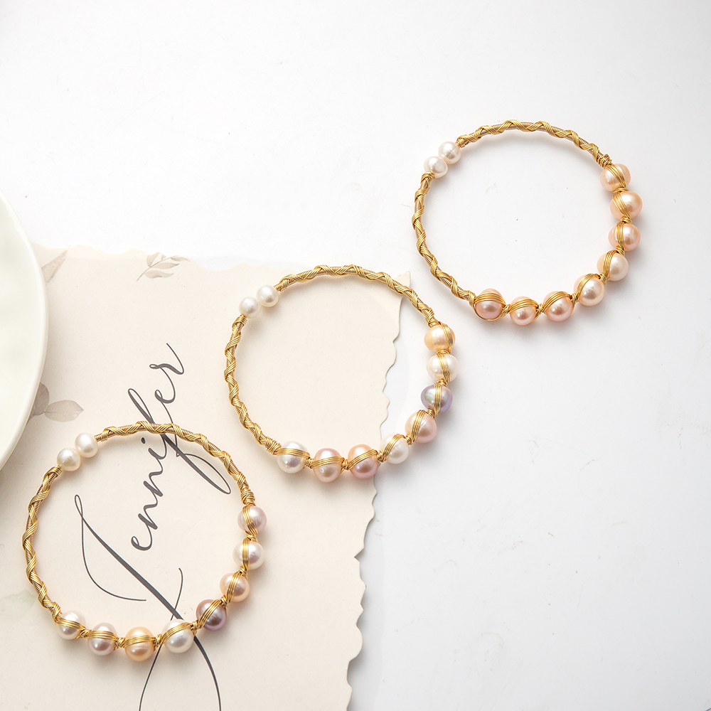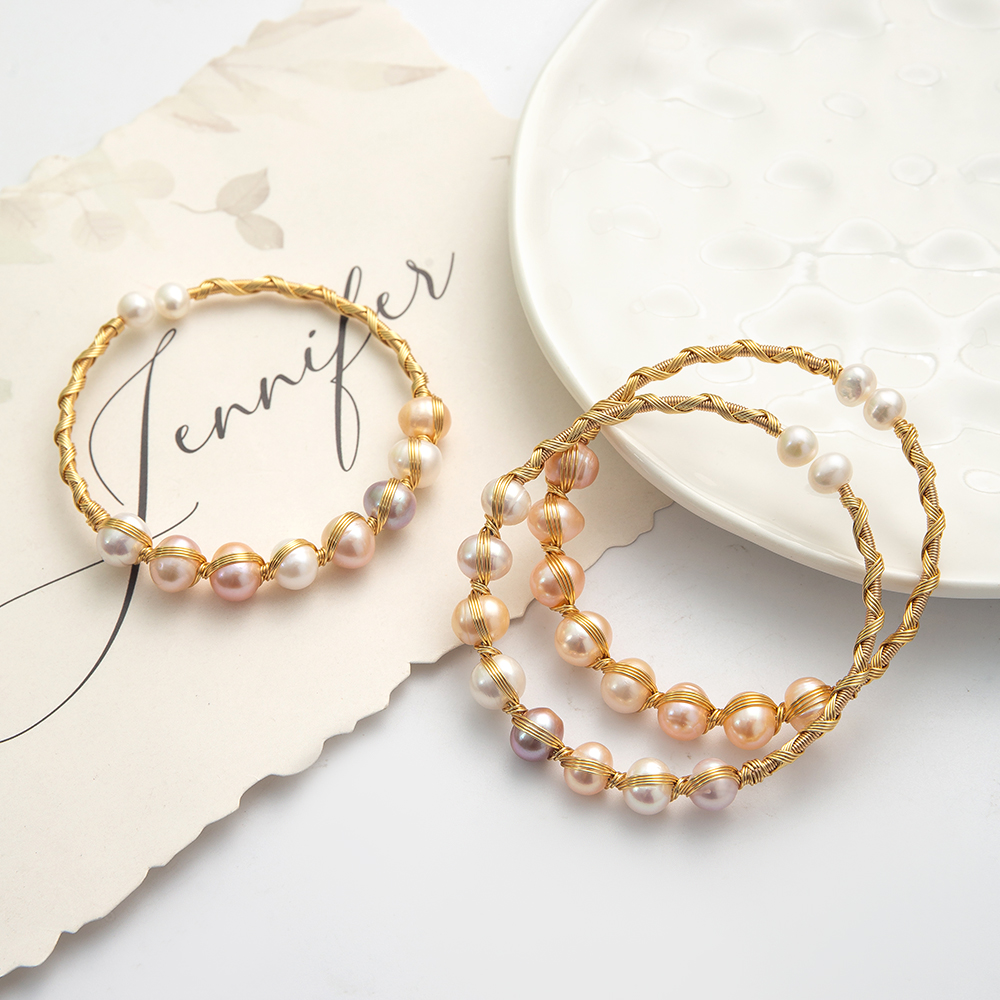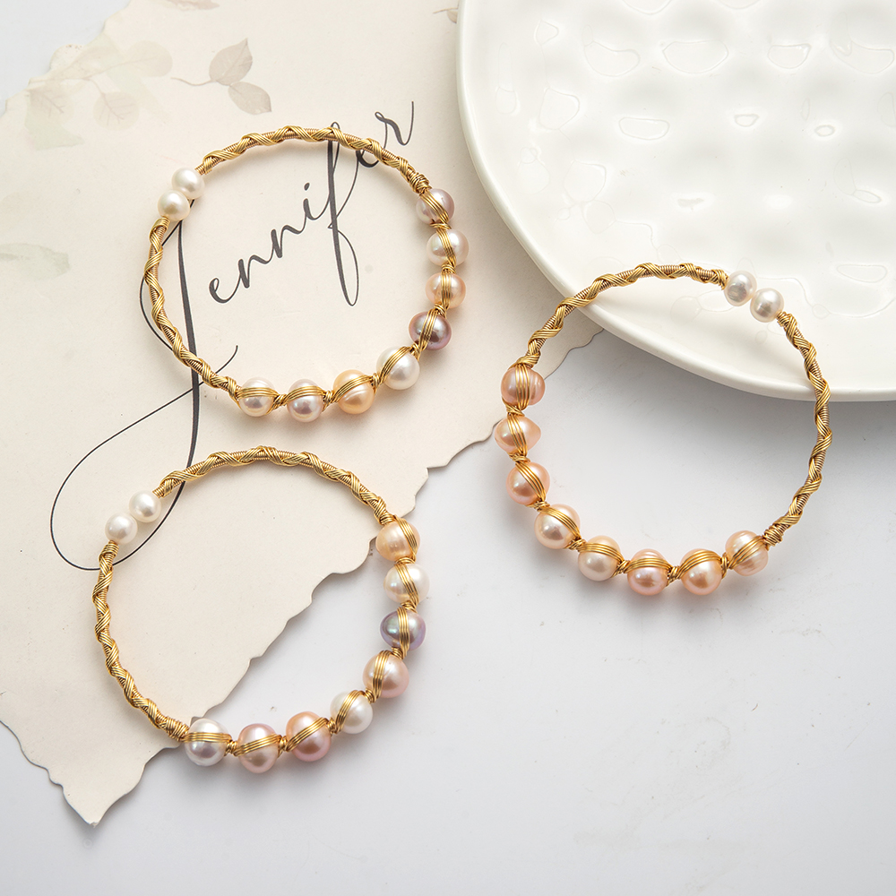 perle d'eau douce cultivée bracelet manchette, avec Alliage, pomme de terre, Placage de couleur d'or, bijoux de mode, plus de couleurs à choisir, Diamètre intérieur:Environ 60mm, Vendu par PC