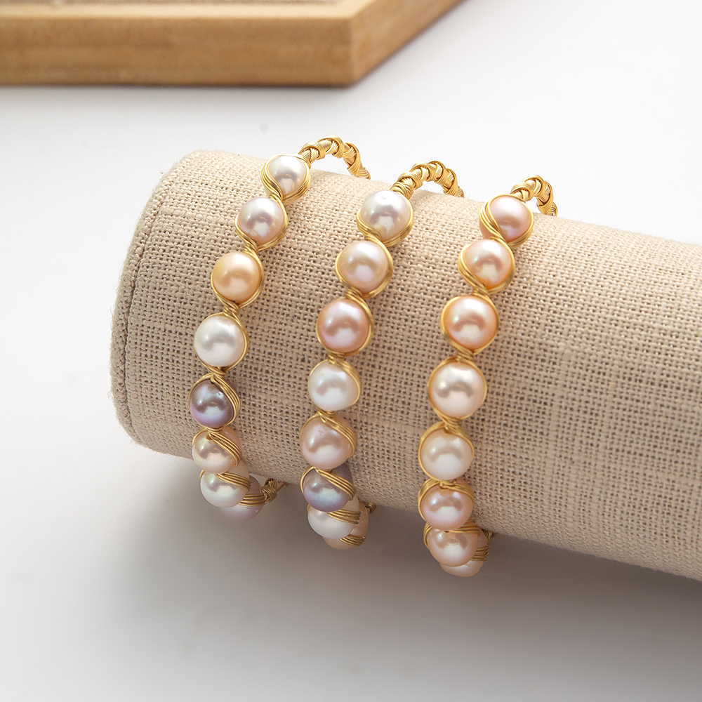 Bracelets de perles, perle d'eau douce cultivée, avec laiton, Placage de couleur d'or, Style coréen & pour femme, plus de couleurs à choisir Environ 7-7.5 pouce, Vendu par PC