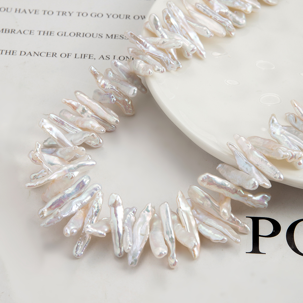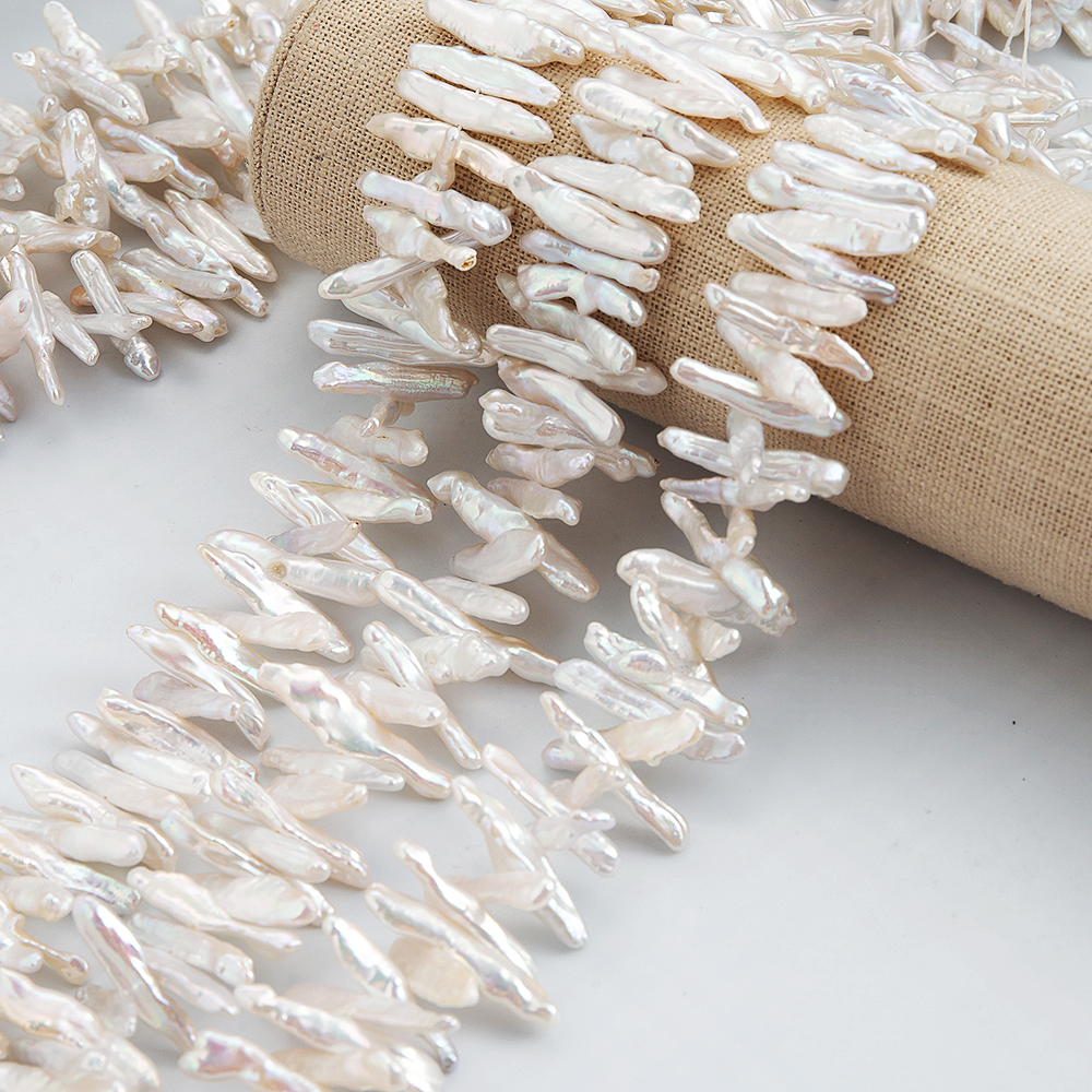 Perles de nacre de culture d'eau douce Biwa, perle d'eau douce cultivée, naturel, blanc, 16-25mm Environ 0.5mm pouce, Vendu par brin