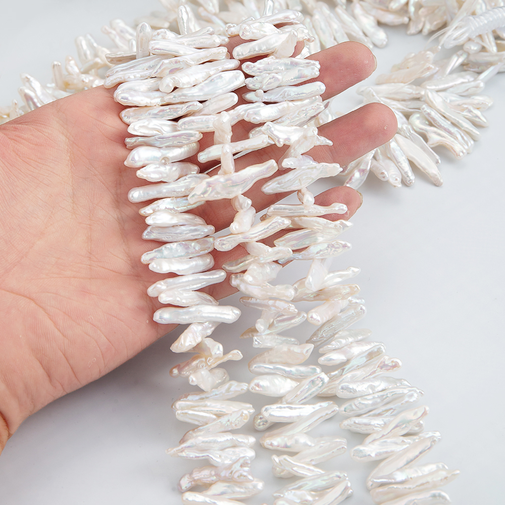 Perles de nacre de culture d'eau douce Biwa, perle d'eau douce cultivée, naturel, blanc, 10-22mm Environ 0.5mm pouce, Vendu par brin