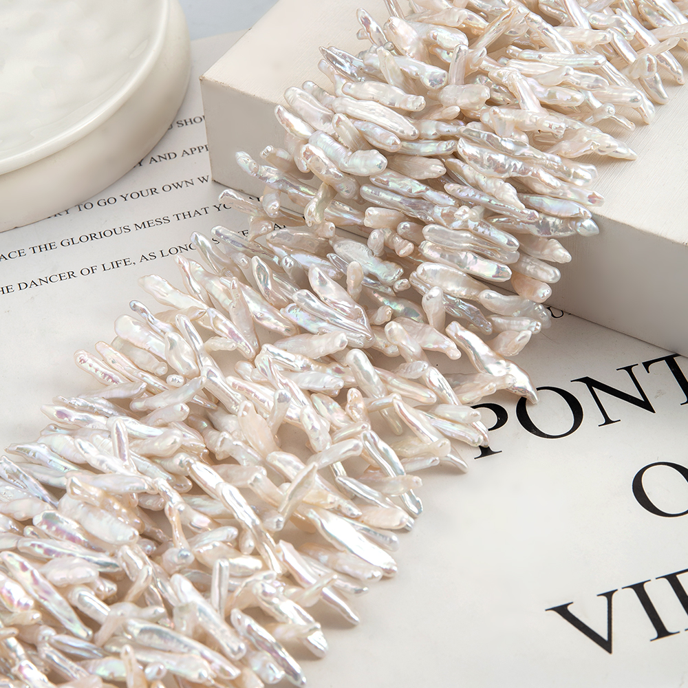 Perles de nacre de culture d'eau douce Biwa, perle d'eau douce cultivée, naturel, blanc, 19-27mm Environ 0.8mm pouce, Vendu par brin