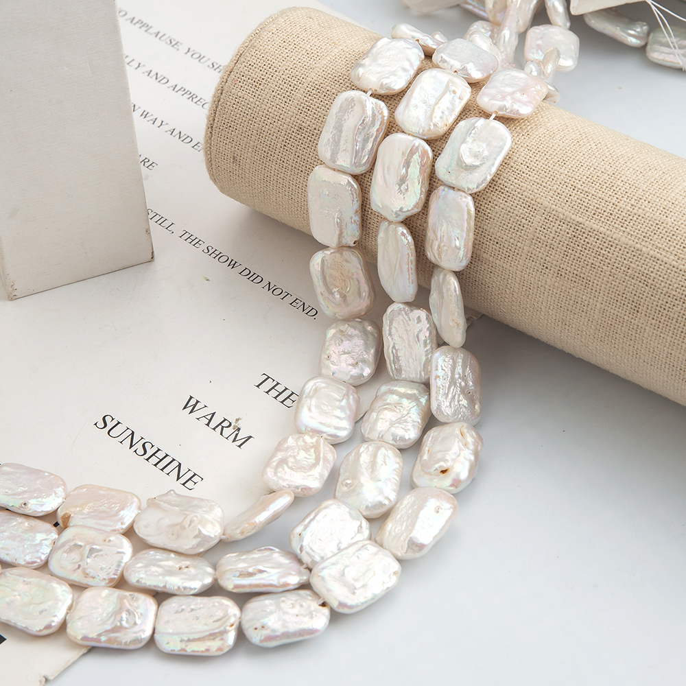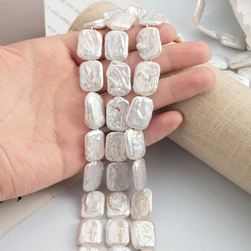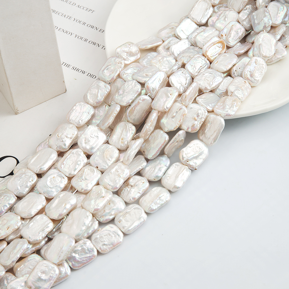perle d'eau douce cultivée goutte, Squaredelle, DIY, blanc, 19x14mm, 21PC/brin, Vendu par brin
