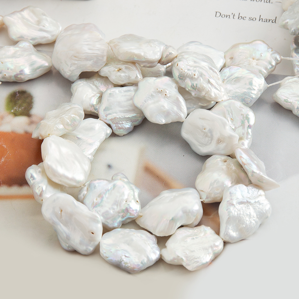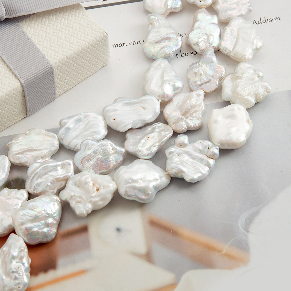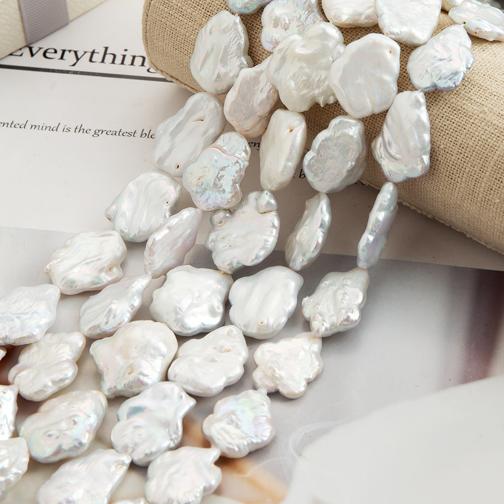 Perles nacres baroques de culture d'eau douce , perle d'eau douce cultivée, naturel, blanc, Niveau AA, 12-16mm Environ 0.8mm Environ 15 pouce, Vendu par brin