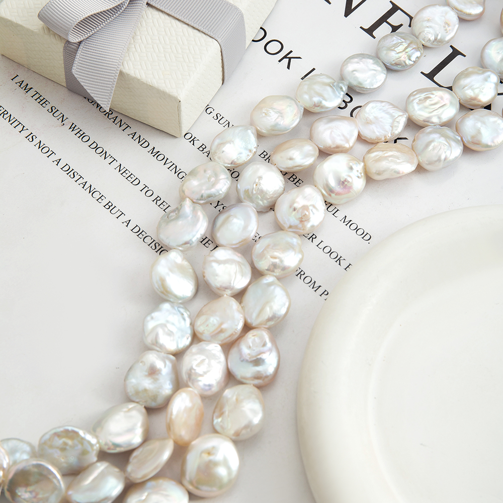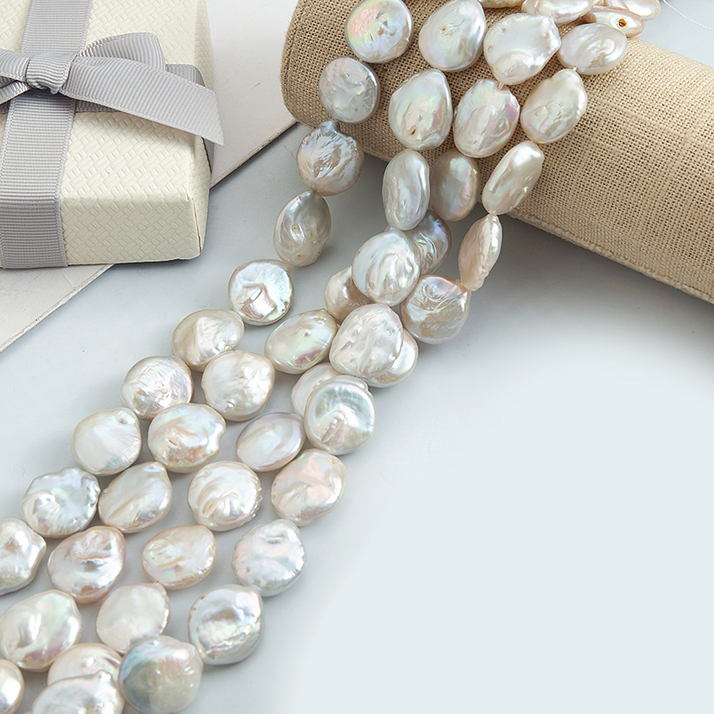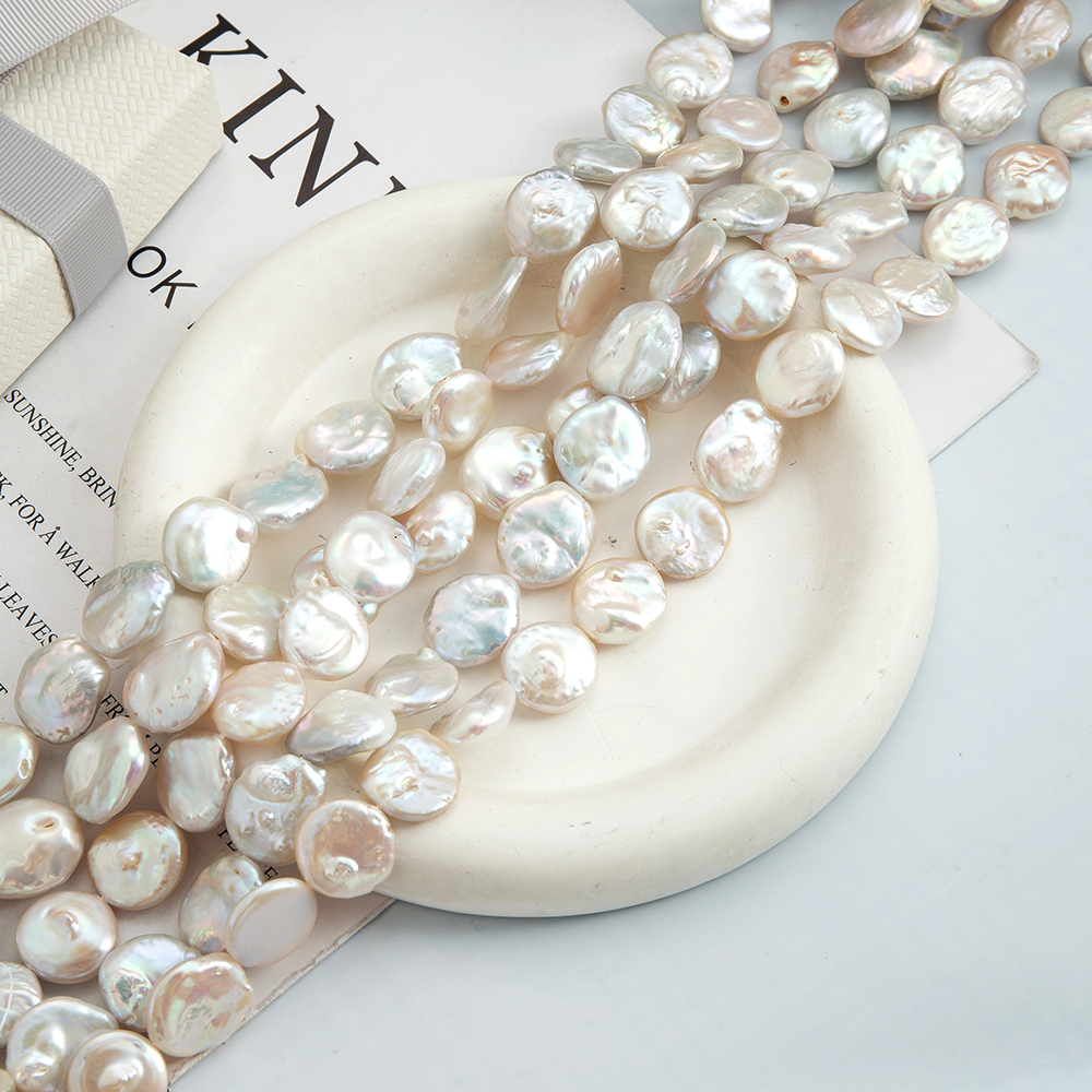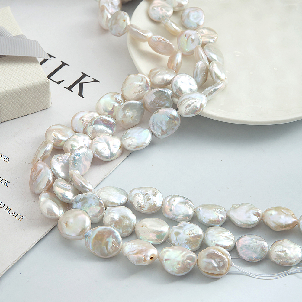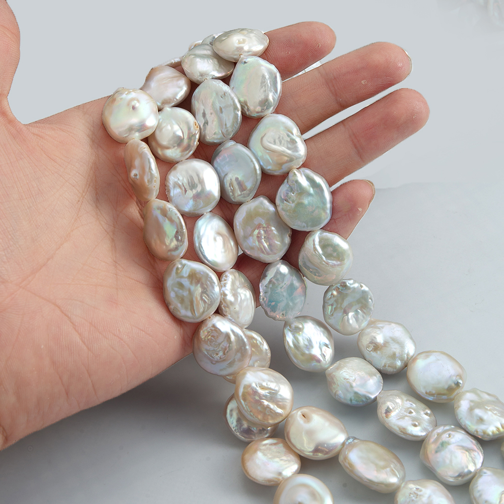 perle d'eau douce cultivée goutte, pièce de monnaie, DIY, blanc, 18x16mm, 21PC/brin, Vendu par brin