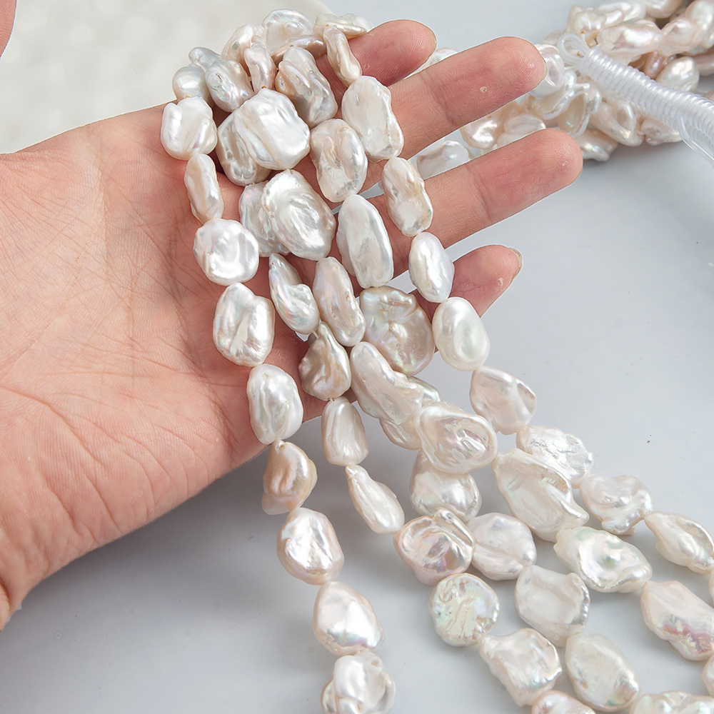 Perles nacres baroques de culture d'eau douce , perle d'eau douce cultivée, naturel, blanc, Niveau AA, 12-16mm Environ 0.8mm Environ 15 pouce, Vendu par brin