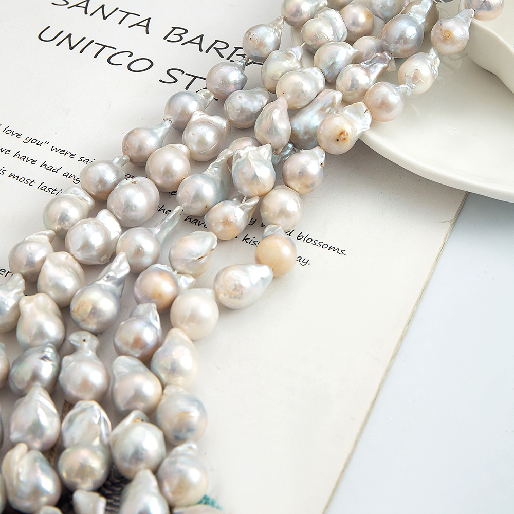 Perles nacres baroques de culture d'eau douce , perle d'eau douce cultivée, naturel, blanc, Niveau AA, 12-16mm Environ 0.8mm Environ 15 pouce, Vendu par brin