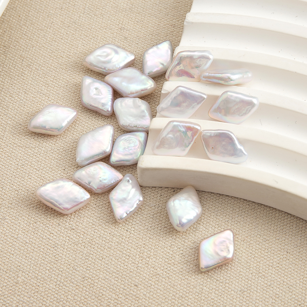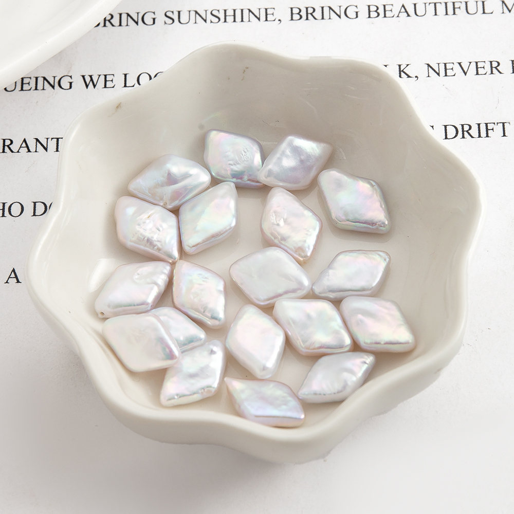 perle d'eau douce cultivée goutte, Losange, aucun trou, blanc, 15x13mm, Vendu par PC