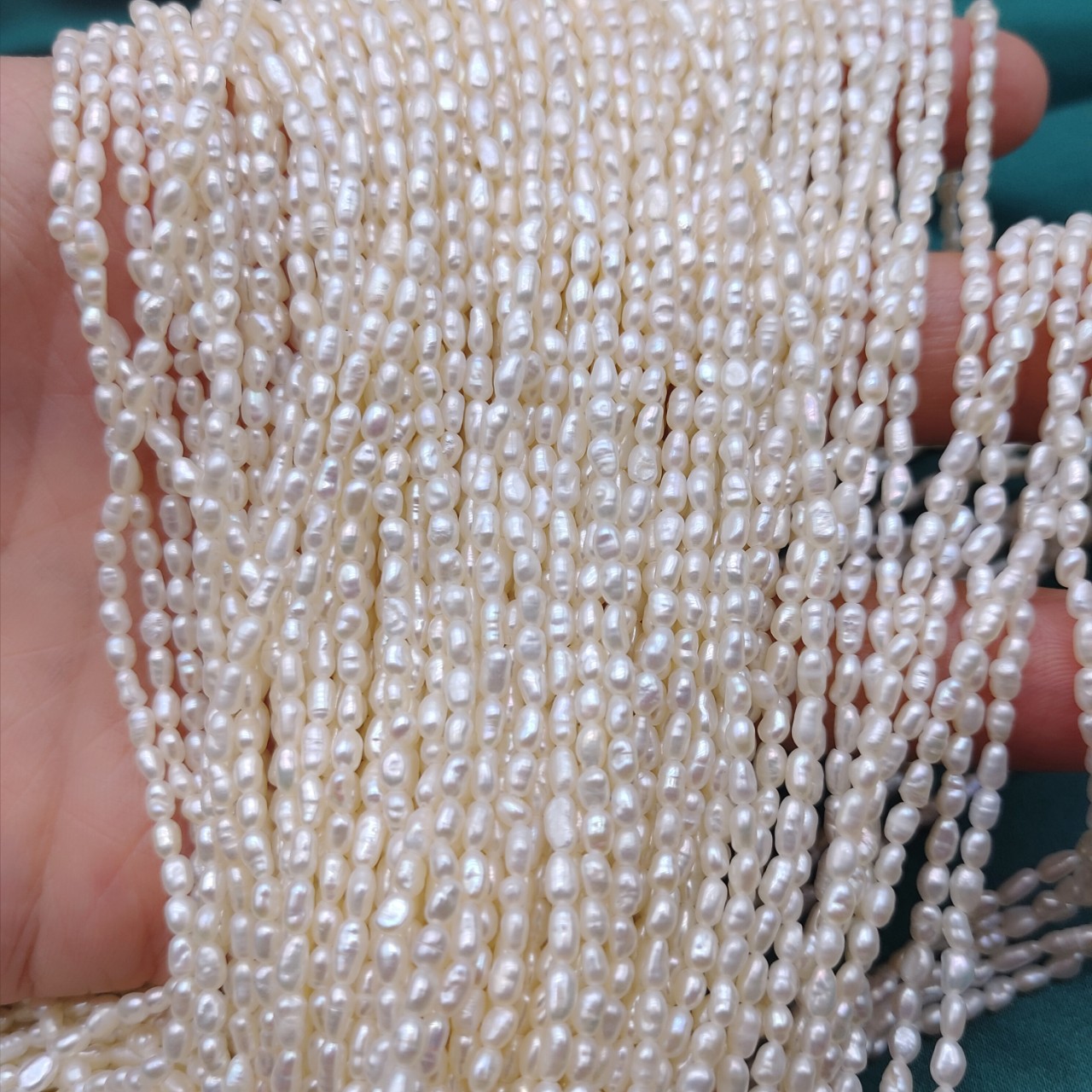 perle d'eau douce cultivée goutte, riz, DIY, blanc, 2x2.5mm, 105PC/brin, Vendu par brin
