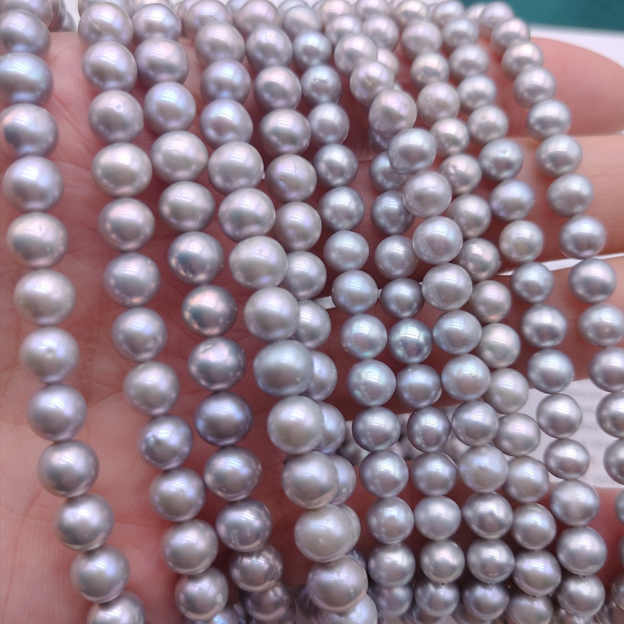 perle d'eau douce cultivée goutte, Rond, DIY, gris, 5x6mm, 85PC/brin, Vendu par brin