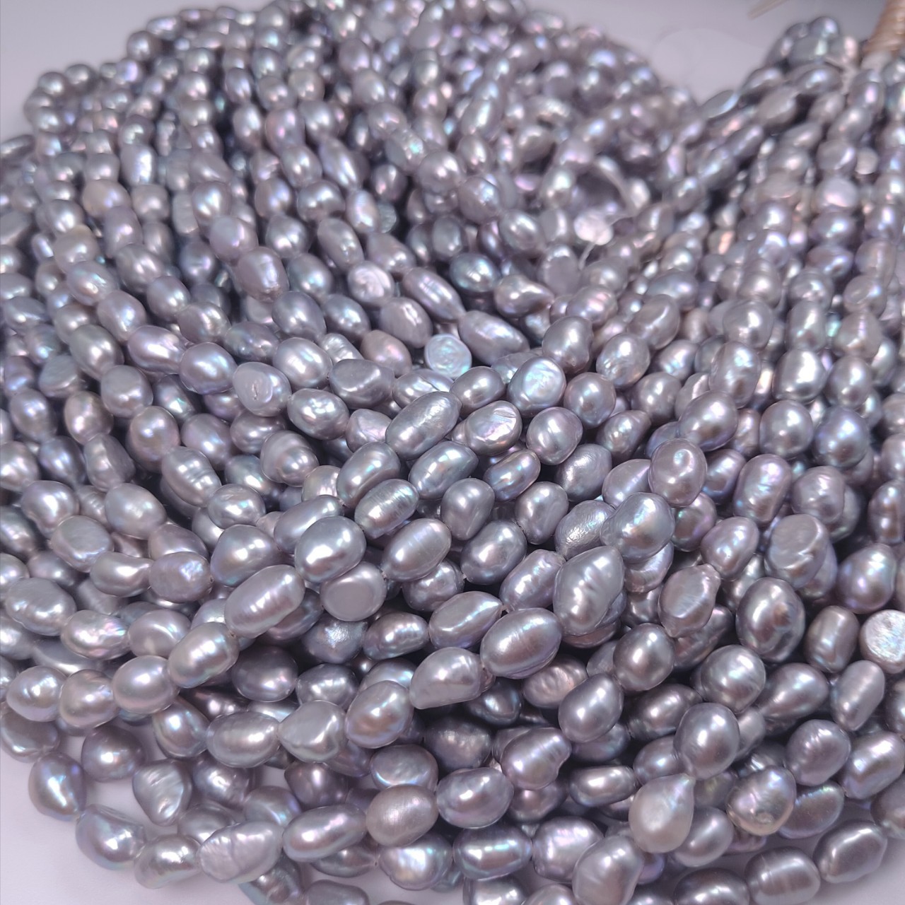 perle d'eau douce cultivée goutte, Irrégulière, DIY, gris argenté, 6x7mm, 40PC/brin, Vendu par brin