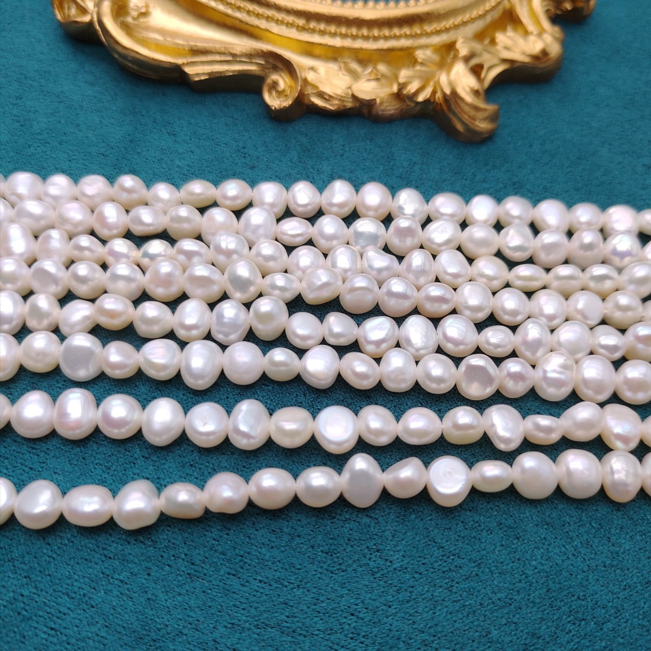 Perle comme Pommes de terre perles d'eau douce, perle d'eau douce cultivée, pomme de terre, naturel, blanc, grade A, 5-6mm Environ 0.8mm .5 pouce, Vendu par brin