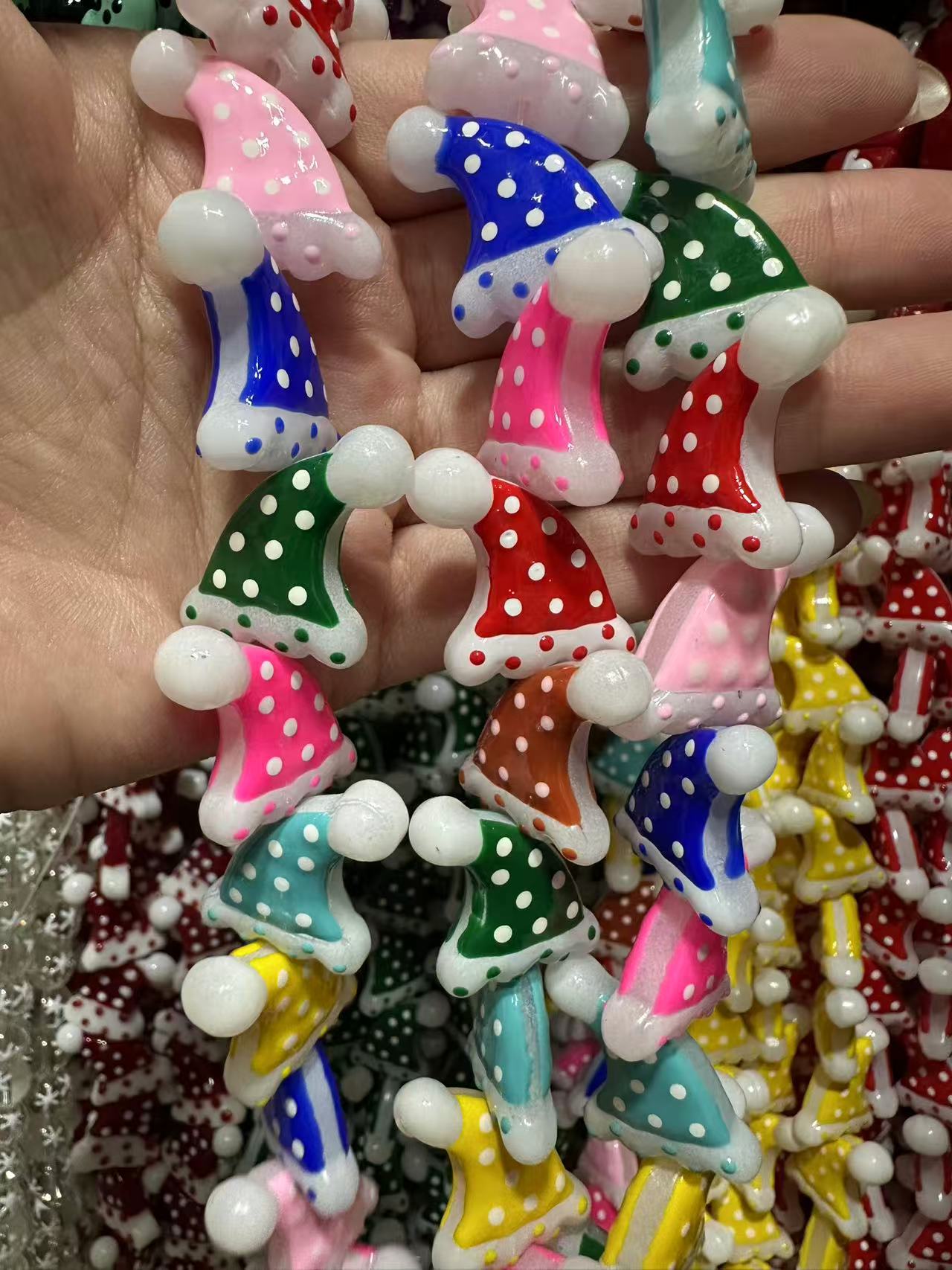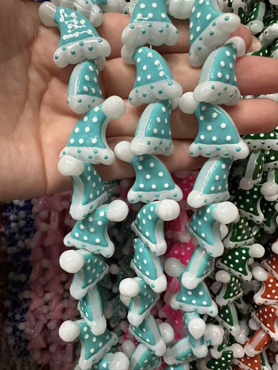 perles Lampwork de Noël, chalumeau, chapeau de noël, DIY & émail, plus de couleurs à choisir, 22x24mm, 20PC/sac, Vendu par sac