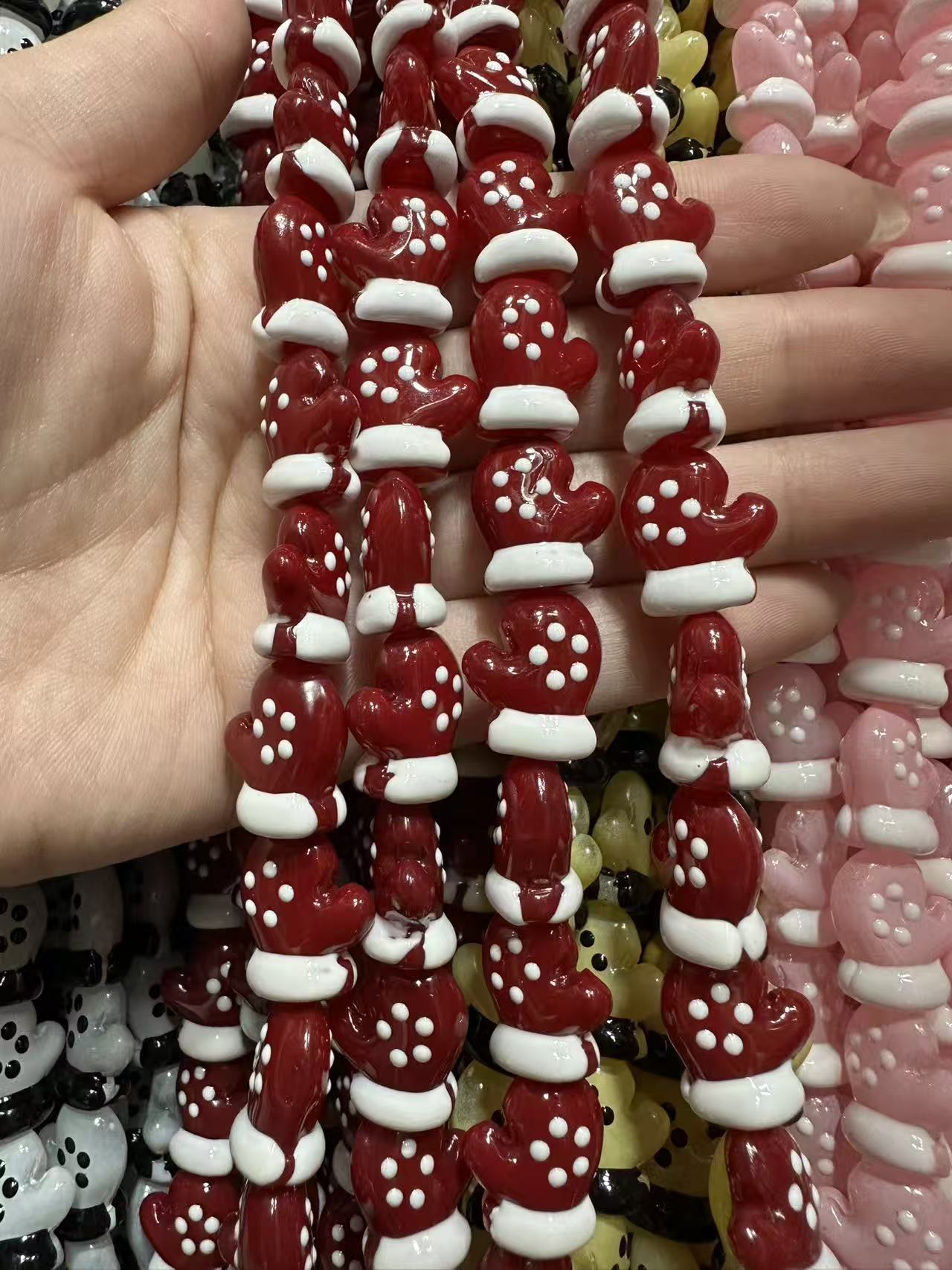 perles Lampwork de Noël, chalumeau, gant de noël, DIY & émail, plus de couleurs à choisir, 15x17mm, 20PC/sac, Vendu par sac