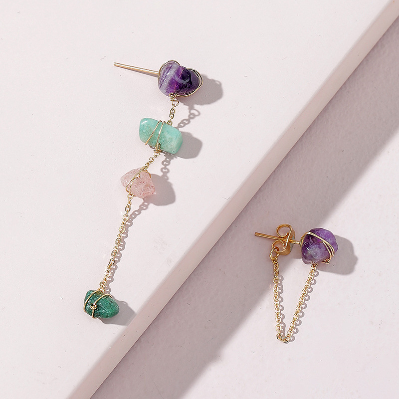 pierre gemme Boucles d'oreilles asymétriques, avec laiton, Placage de couleur d'or, styles différents pour le choix & pour femme, earring size 20-60mm, Vendu par paire