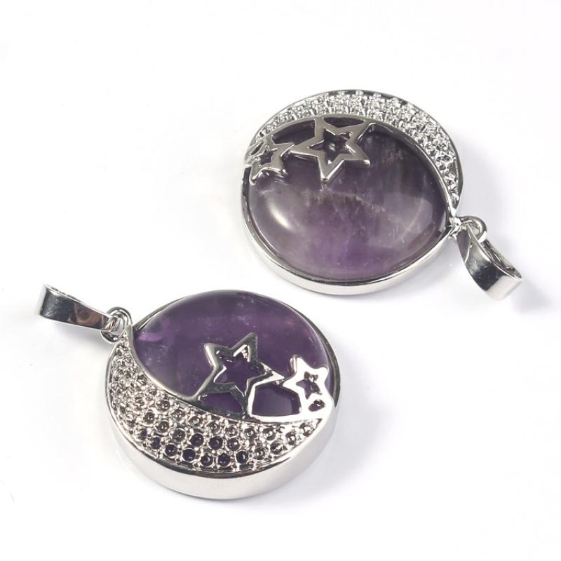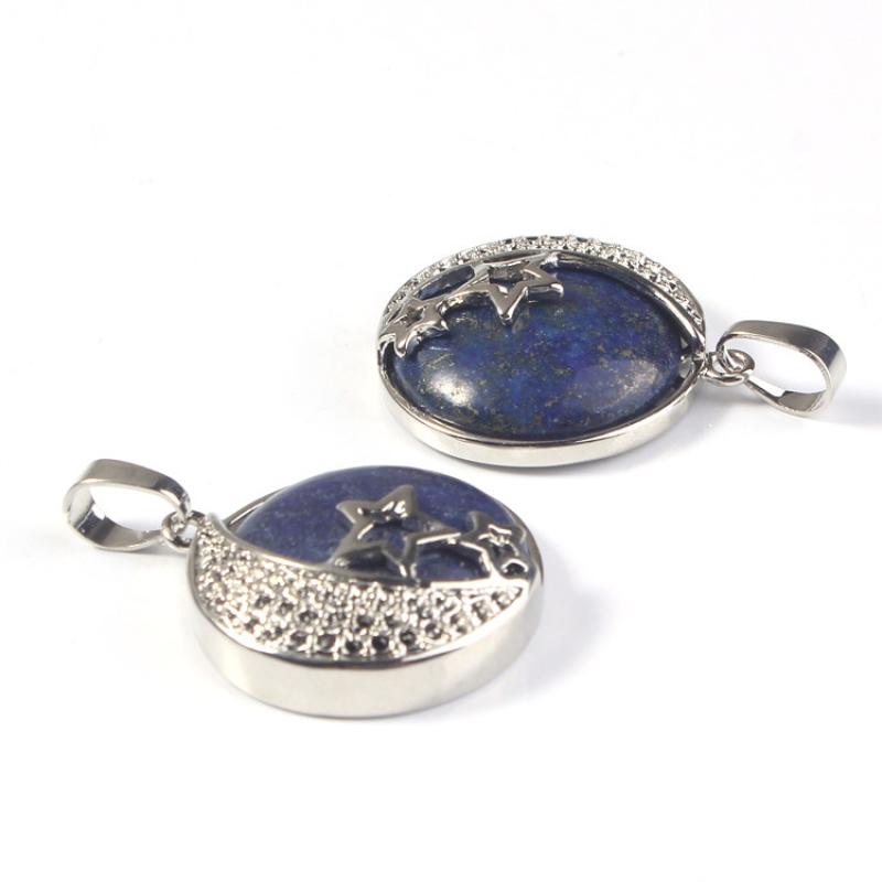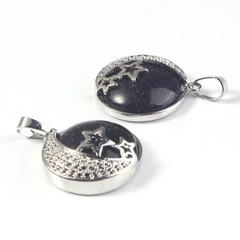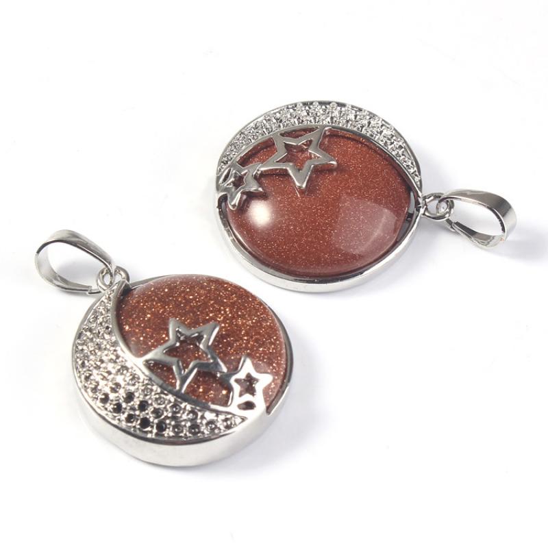 pierre gemme Pendentif, avec alliage de zinc, Rond, DIY & différents matériaux pour le choix, 53x31x10mm, Vendu par PC