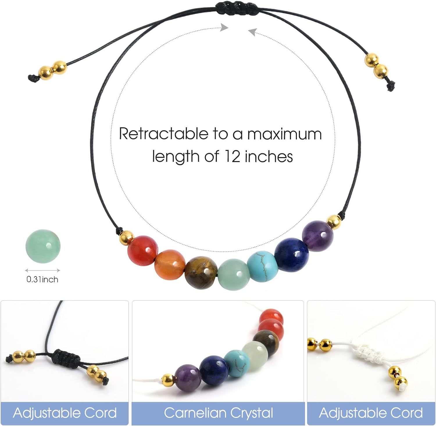 pierre gemme Set de bracelet, avec corde de cire, Rond, fait à la main, 2 pièces & différents matériaux pour le choix & pour femme, Longueur:Environ 6-12 pouce, Vendu par fixé
