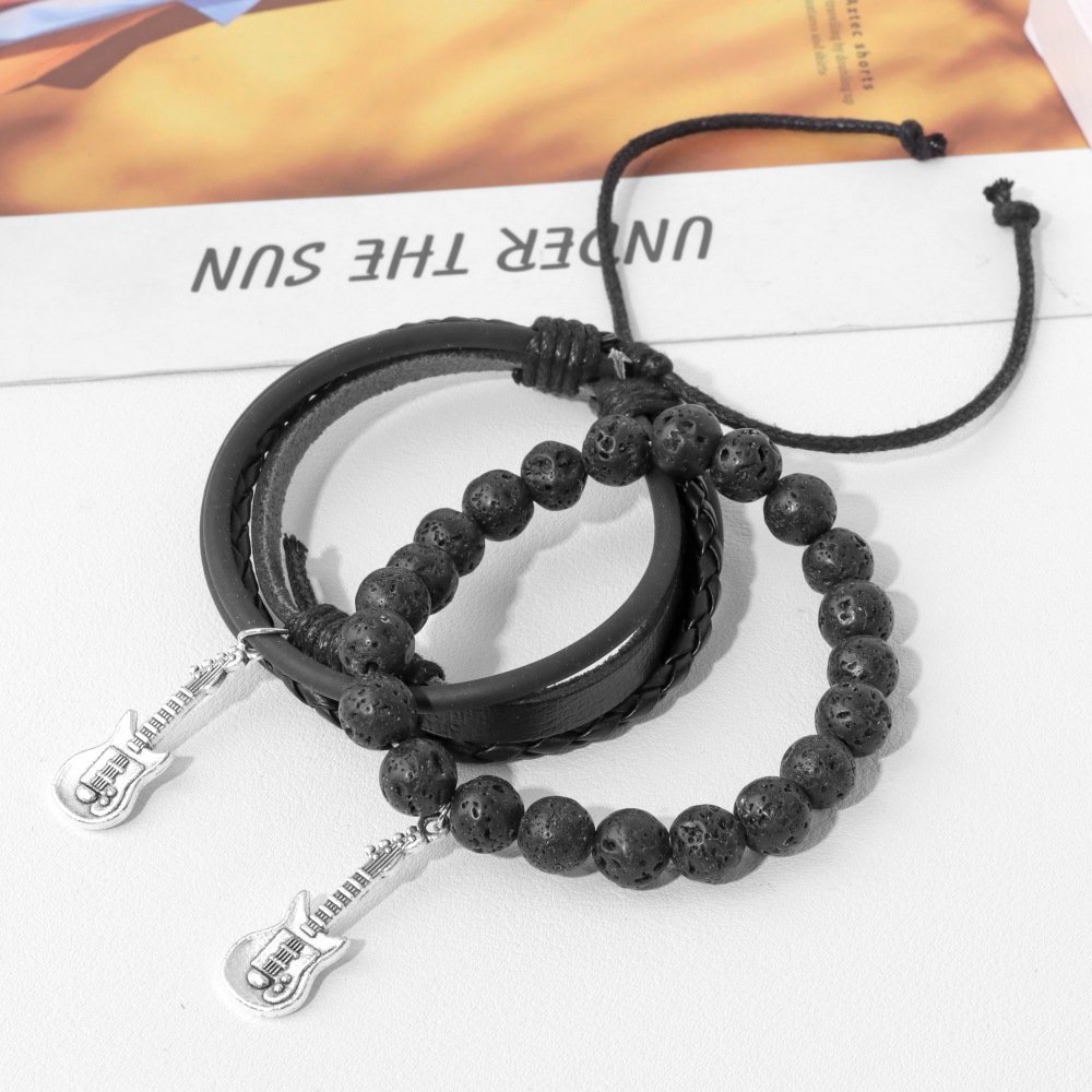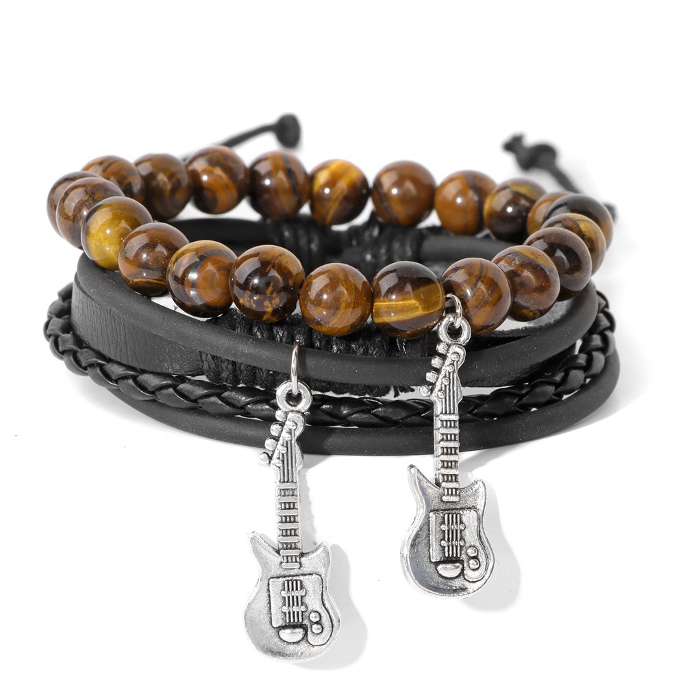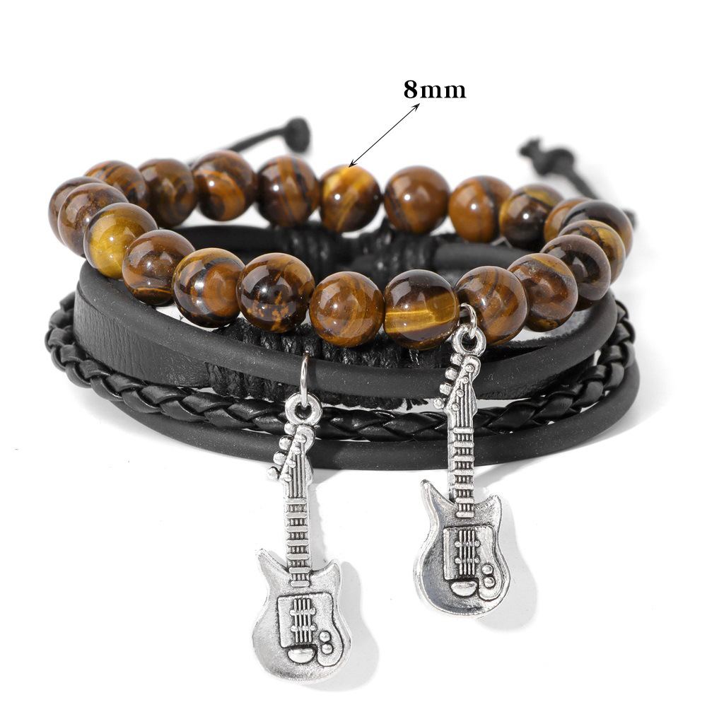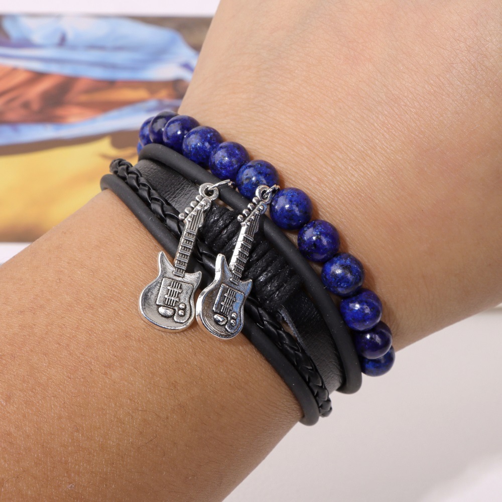 pierre gemme bracelet, avec cuir PU & alliage de zinc, guitare, fait à la main, multicouche & pour homme, plus de couleurs à choisir, Longueur:Environ 6-10 pouce, Vendu par PC