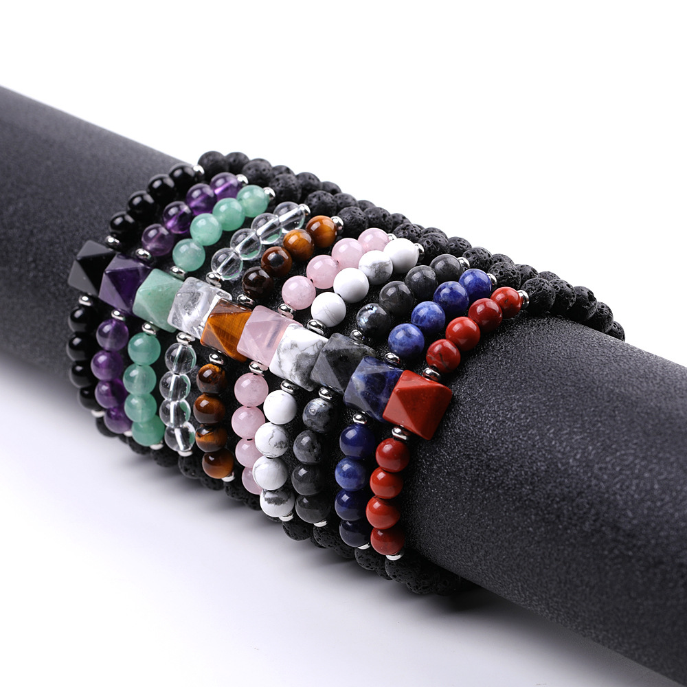 pierre gemme bracelet, avec Cordon de noeud & lave volcanique & Acier inoxydable 304, fait à la main, bijoux de mode & différents matériaux pour le choix & unisexe, Vendu par PC
