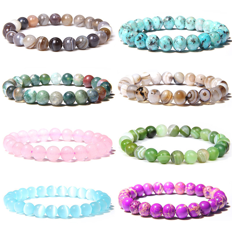 pierre gemme bracelet, Rond, fait à la main, différents matériaux pour le choix & unisexe, beads length 8mm, Longueur:Environ 7.5 pouce, Vendu par PC