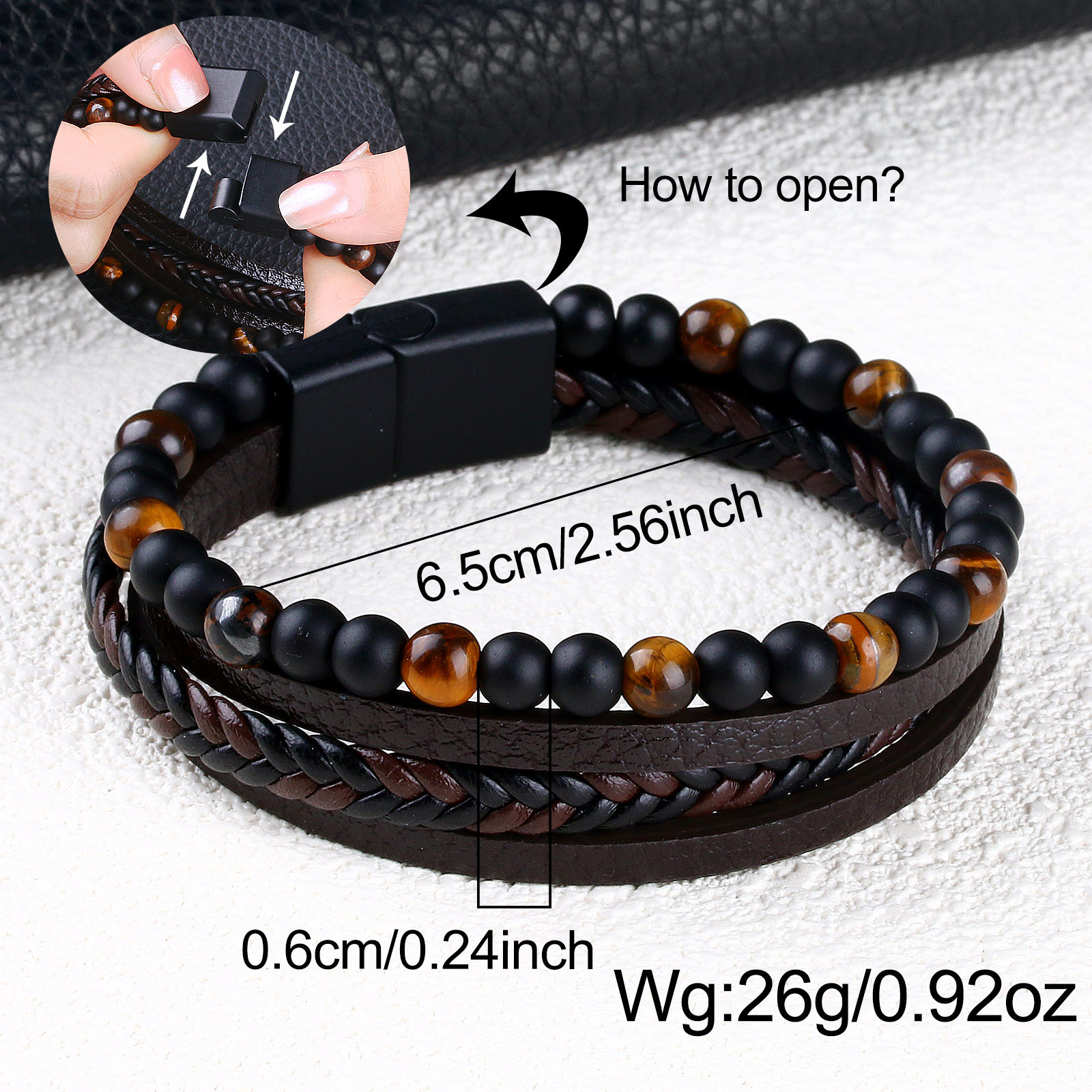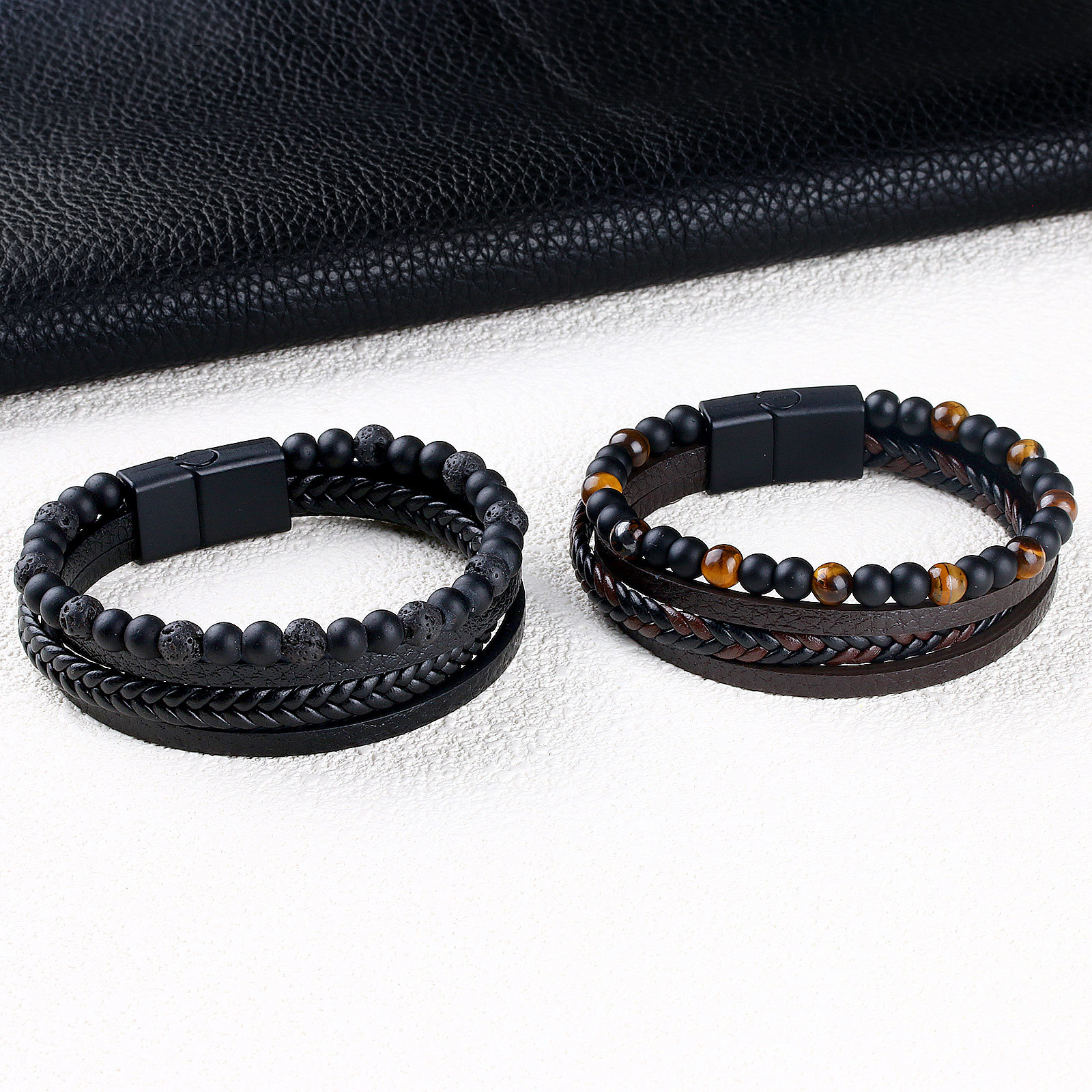 pierre gemme bracelet, avec cuir PU, fait à la main, multicouche & différents matériaux pour le choix & pour homme, Vendu par PC